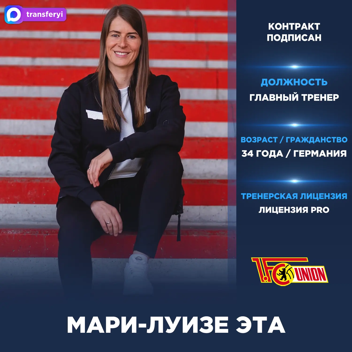 Официально: Мари-Луизе Эта назначена главным тренером мужской команды «Унион Берлин» до конца текущего сезона.
