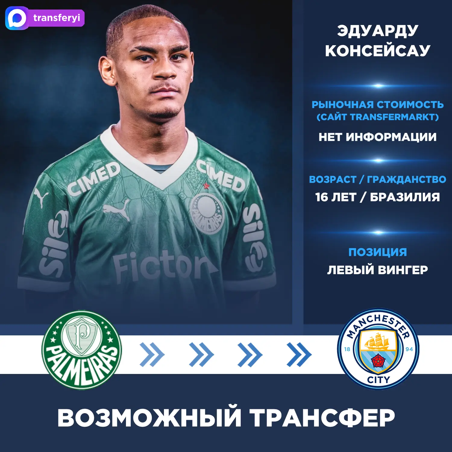 ESPN: «Манчестер Сити» ведёт переговоры о трансфере 16-летнего Эдуарду Консейсау из «Палмейраса».