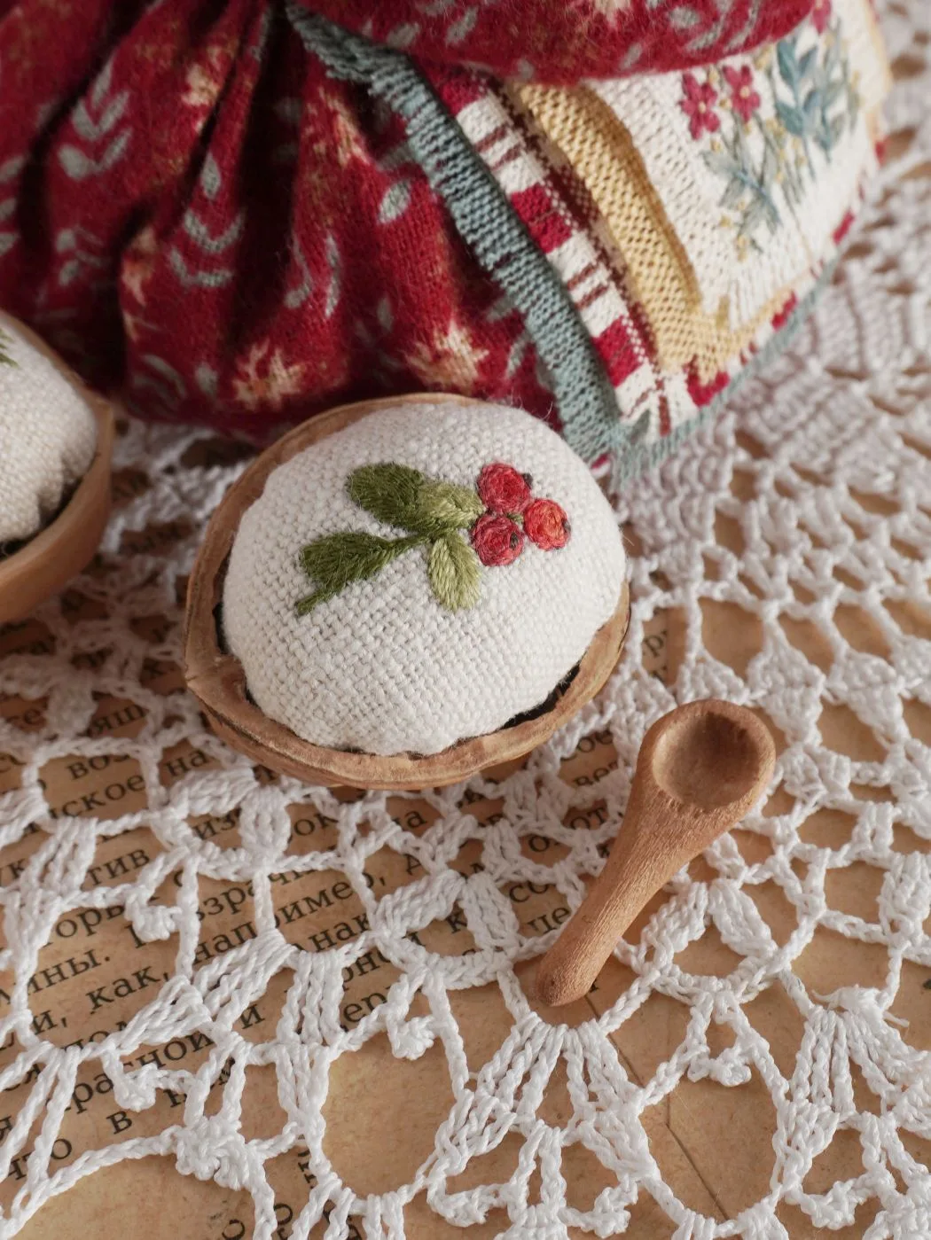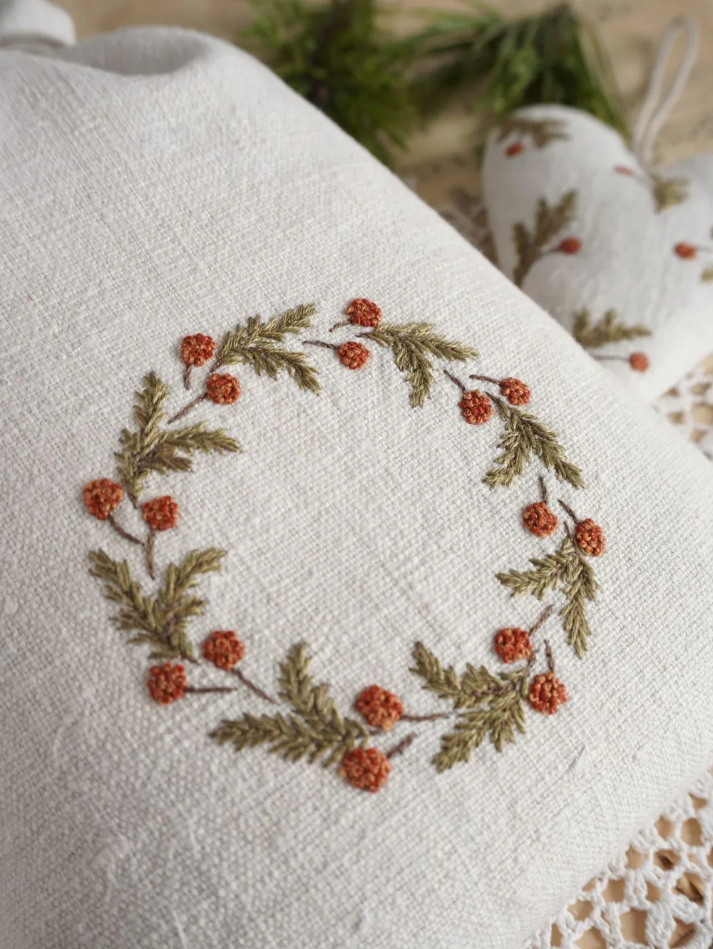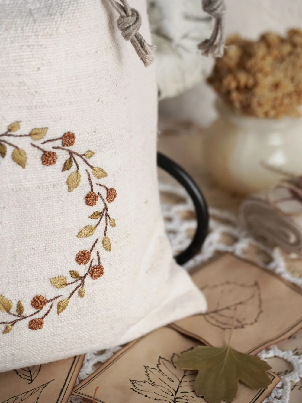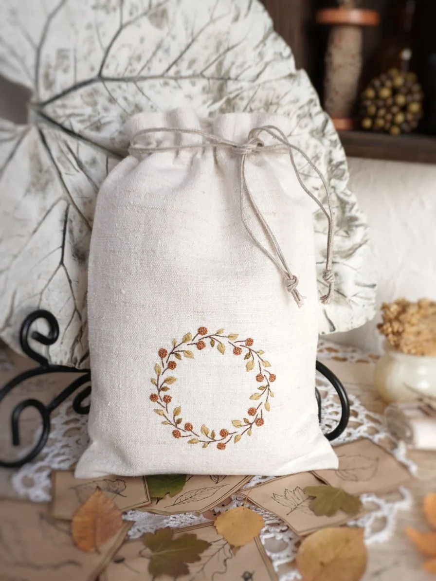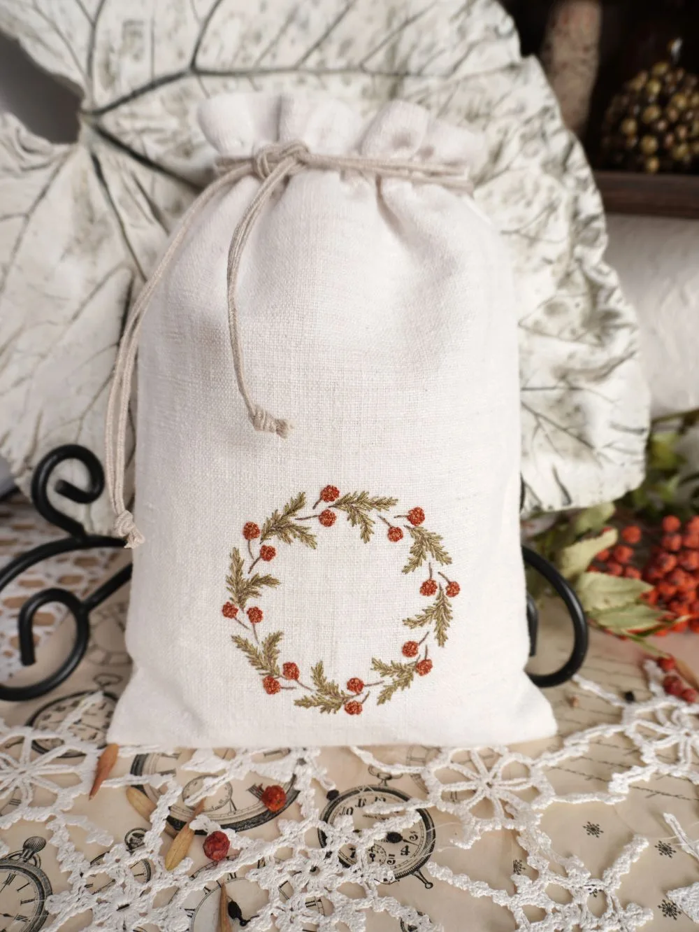 Можно составить комплект с мешочками, на которых эти же мотивы вышиты в виде венков.