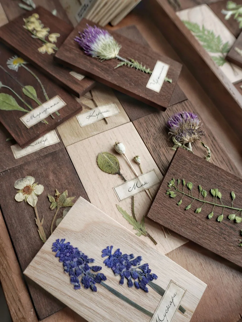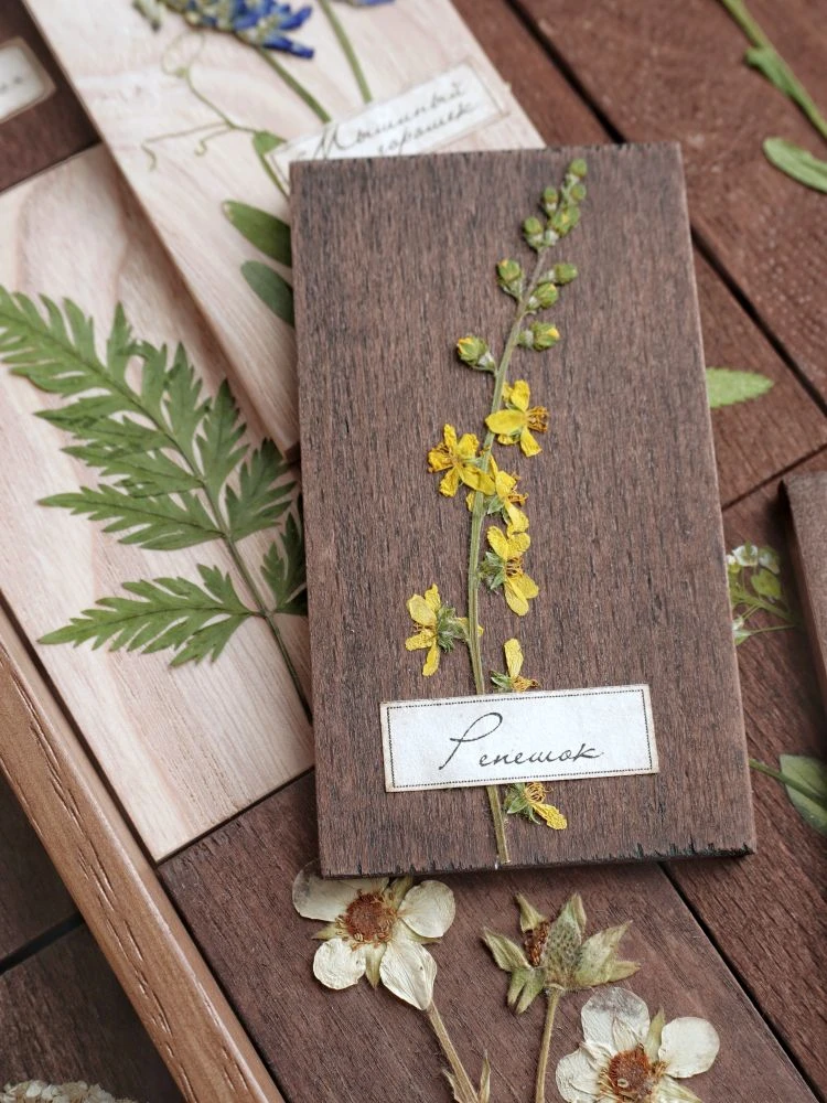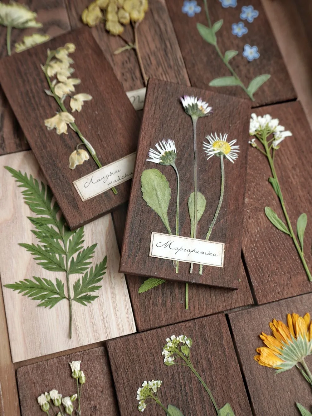 А не так давно придумалась вот такая "разновидность" гербария ☺️ - исключительно декоративная. Вчера дополнила коллекцию этих досточек, перебрав все, что насушила весной и летом, выбирала для них лучшие из подходящих экземпляров 🌿☘️🌱