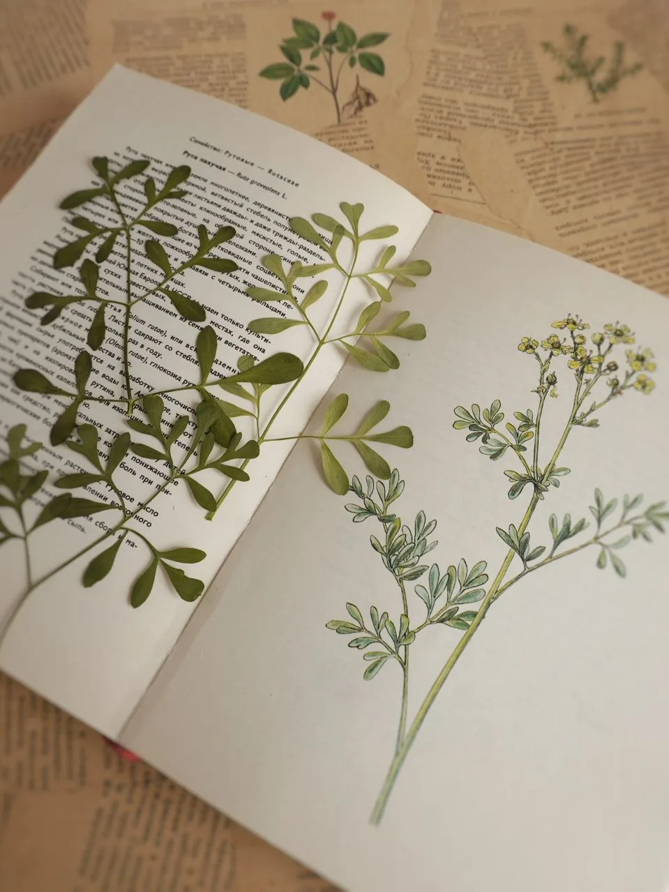Сушу и листочки руты для гербария, посмотрите, какие они ажурные!