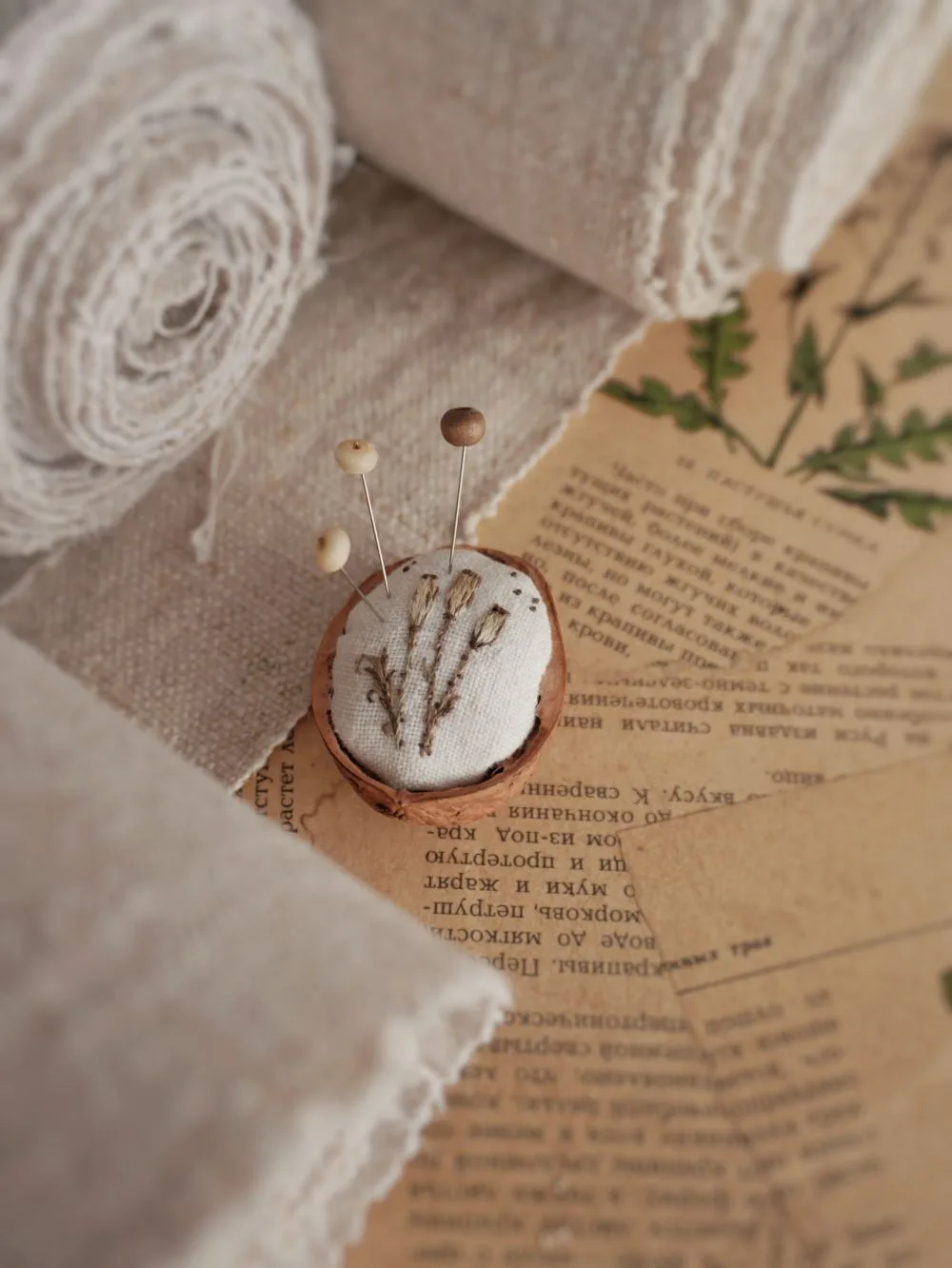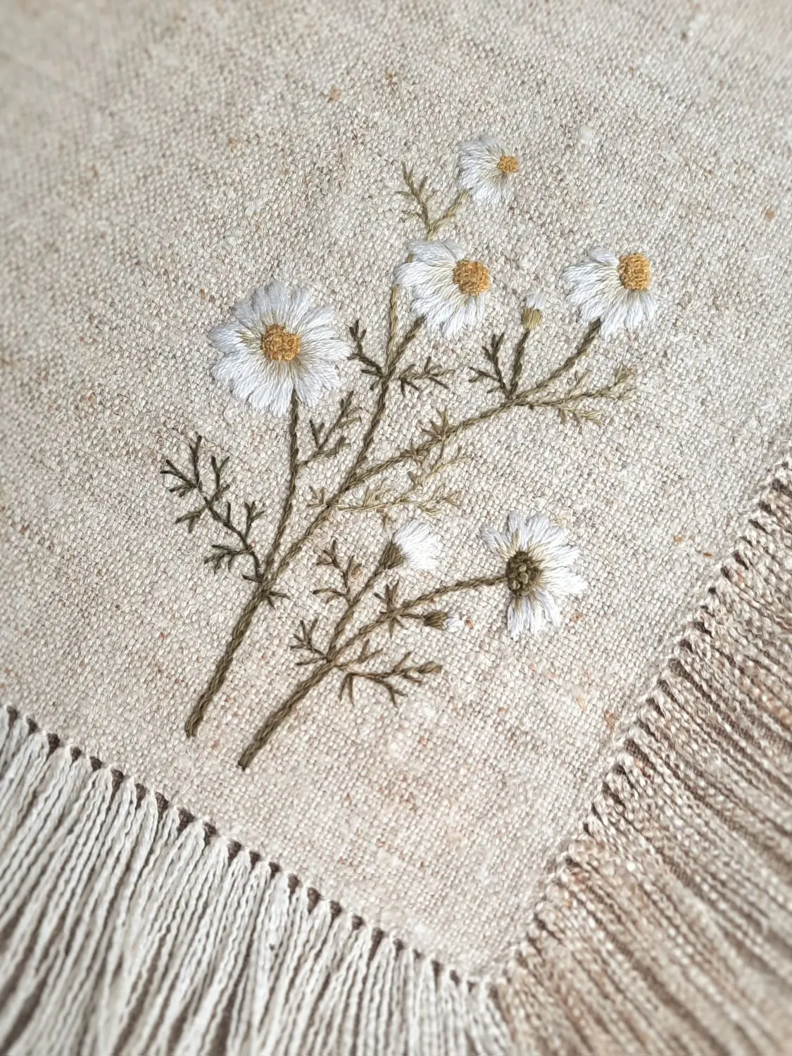 Давно лежал этот отрез домоткани, с пятнами от времени, думала, что бы такого гербарно-ботанического на нем вышить. Были сомнения, понравится ли результат. Все же вышивка - работа кропотливая и было бы жалко труда, если итог не понравится. А с "готовыми" лепестками из листьев сразу удалось оценить, что примерно получится ☀️