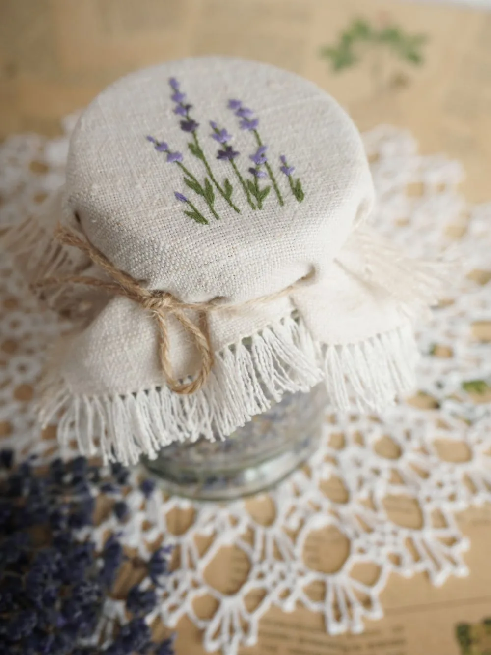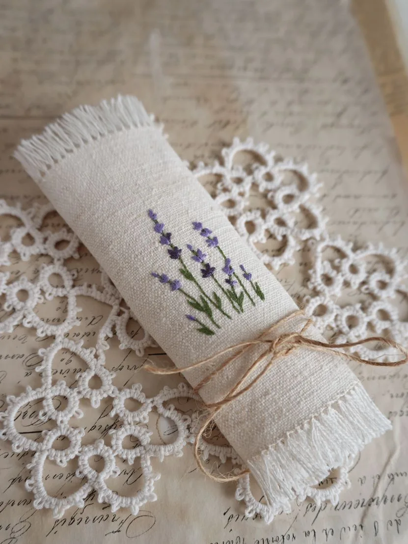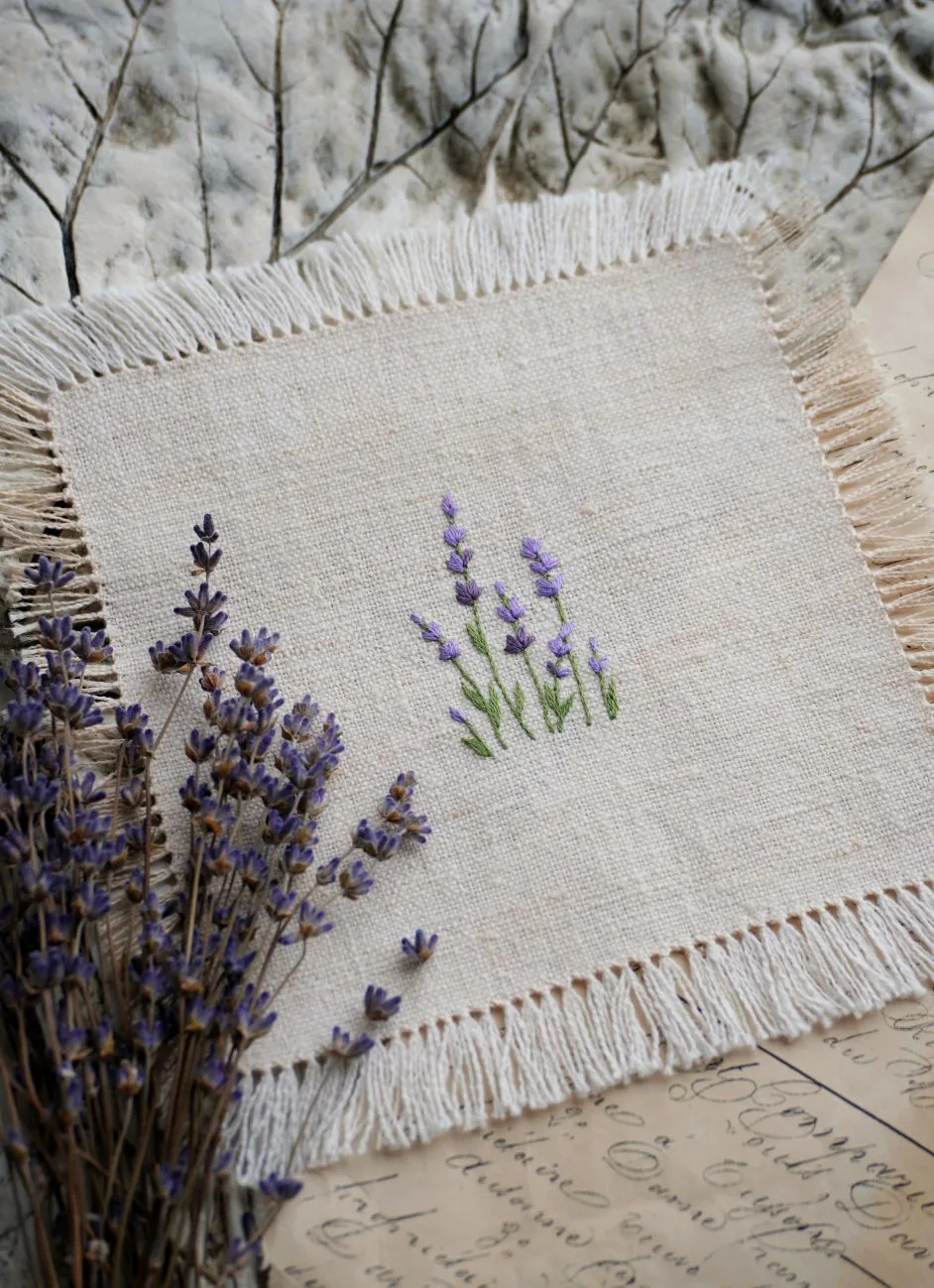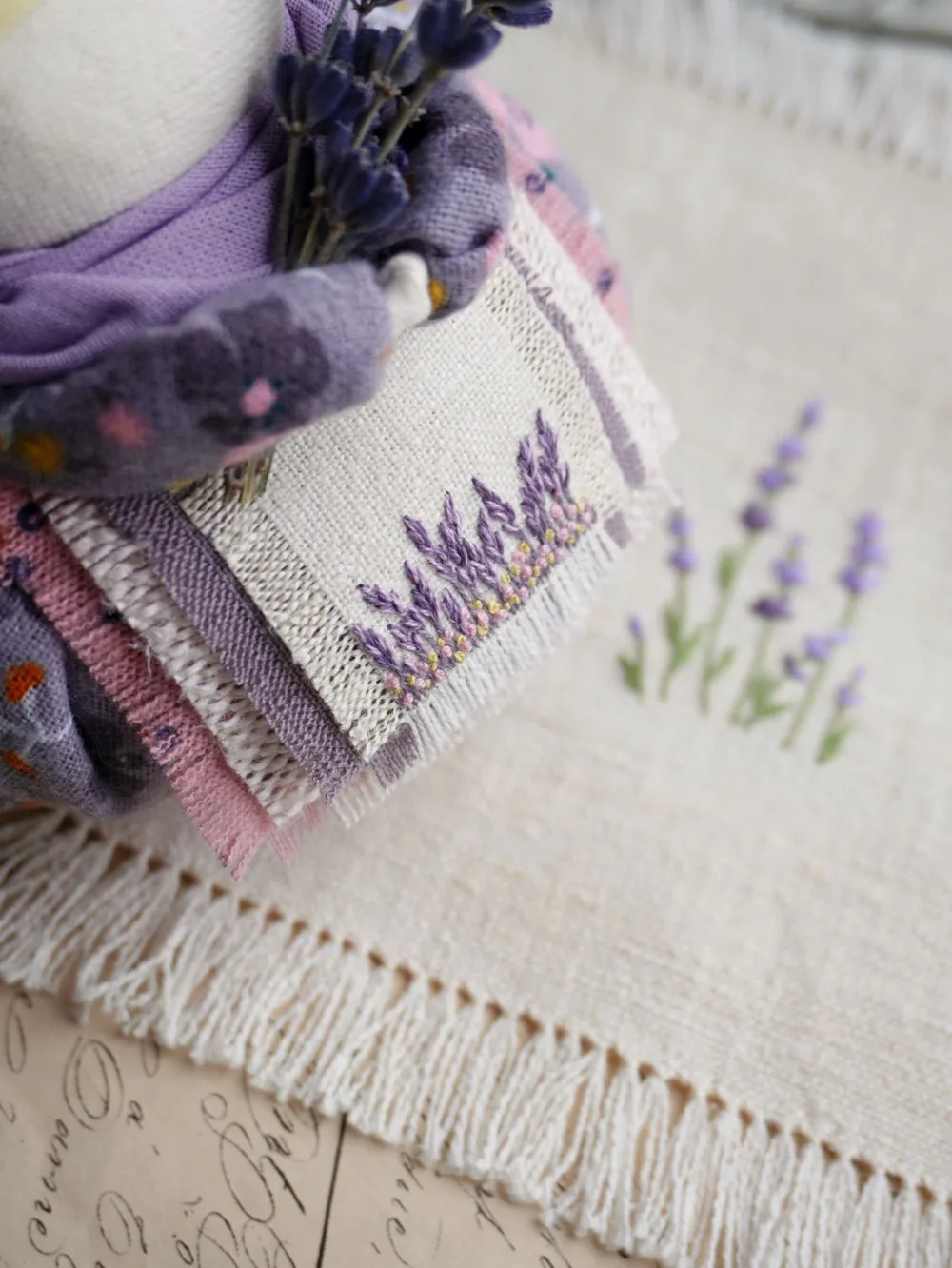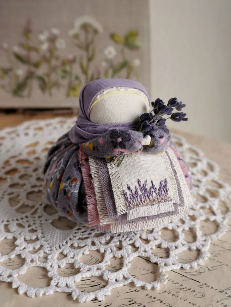 Для вашего лавандового настроения - девочка-травница и салфетка с вышивкой веточек лаванды.