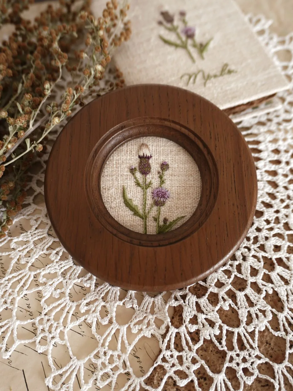 Подобная вышивка бодяка есть в виде панно в рамочке из цельного дуба диаметром 10 см. Вышивка на старинной конопляной домоткани. Для таких же любителей полевой красоты и вышитых сорнячков ☺️🤗