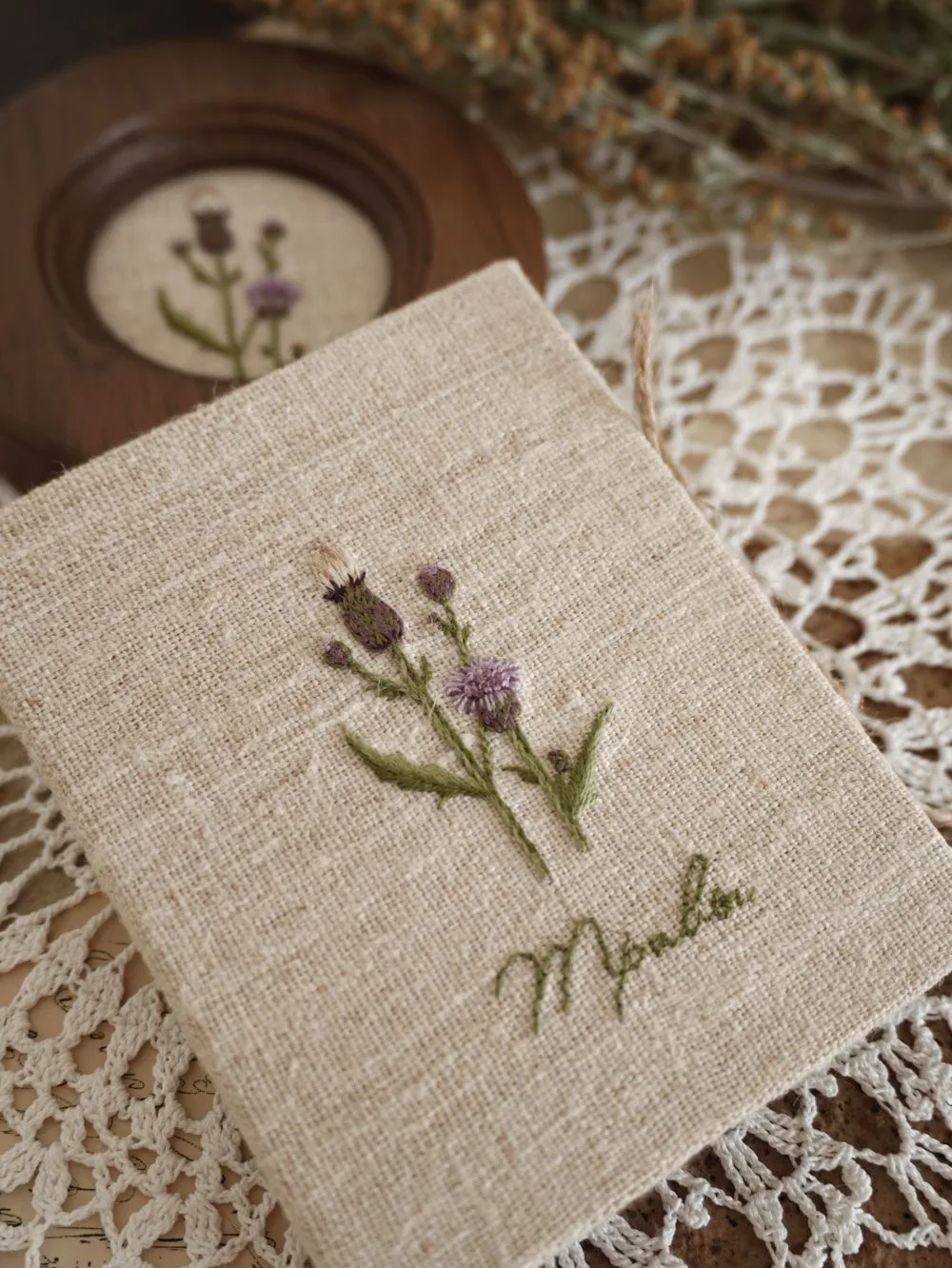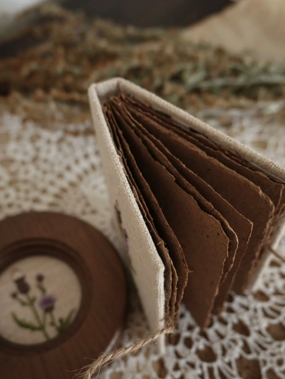 Делюсь результатом - своим первым блокнотиком с вышивкой с листами из бумаги ручного литья. Несовершенный, с учебными помарками, но уже любимый 🤍 и это бодячок на обложку органично вписался))