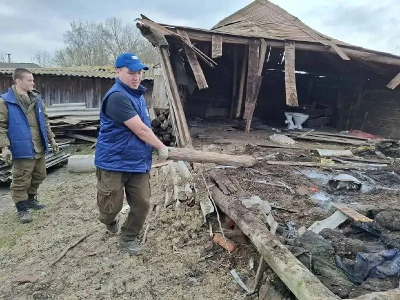 В Рыльском районе добровольцы подключились к работам в многоквартирном доме: после восстановления крыши они помогают с уборкой и вывозом поврежденного шифера.