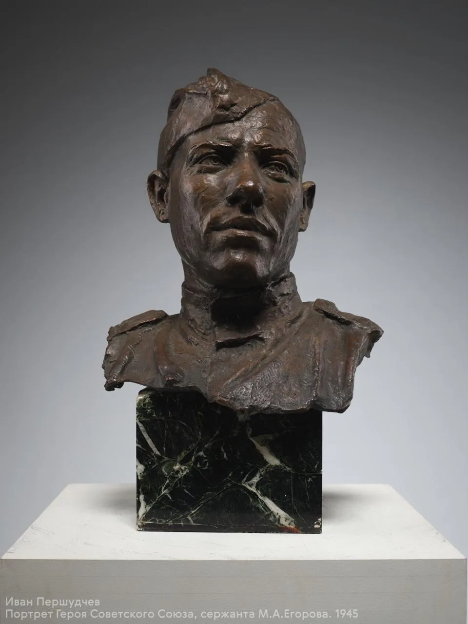 Скульптор Иван Першудчев ушел добровольцем на фронт, в качестве рядового солдата воевал на подступах к Москве под Малоярославцем и Наро-Фоминском, получил ранение. Пройдя лечение в госпитале, он начал работать как скульптор в действующих частях Красной Армии и создал галерею портретных бюстов героев Великой Отечественной войны.