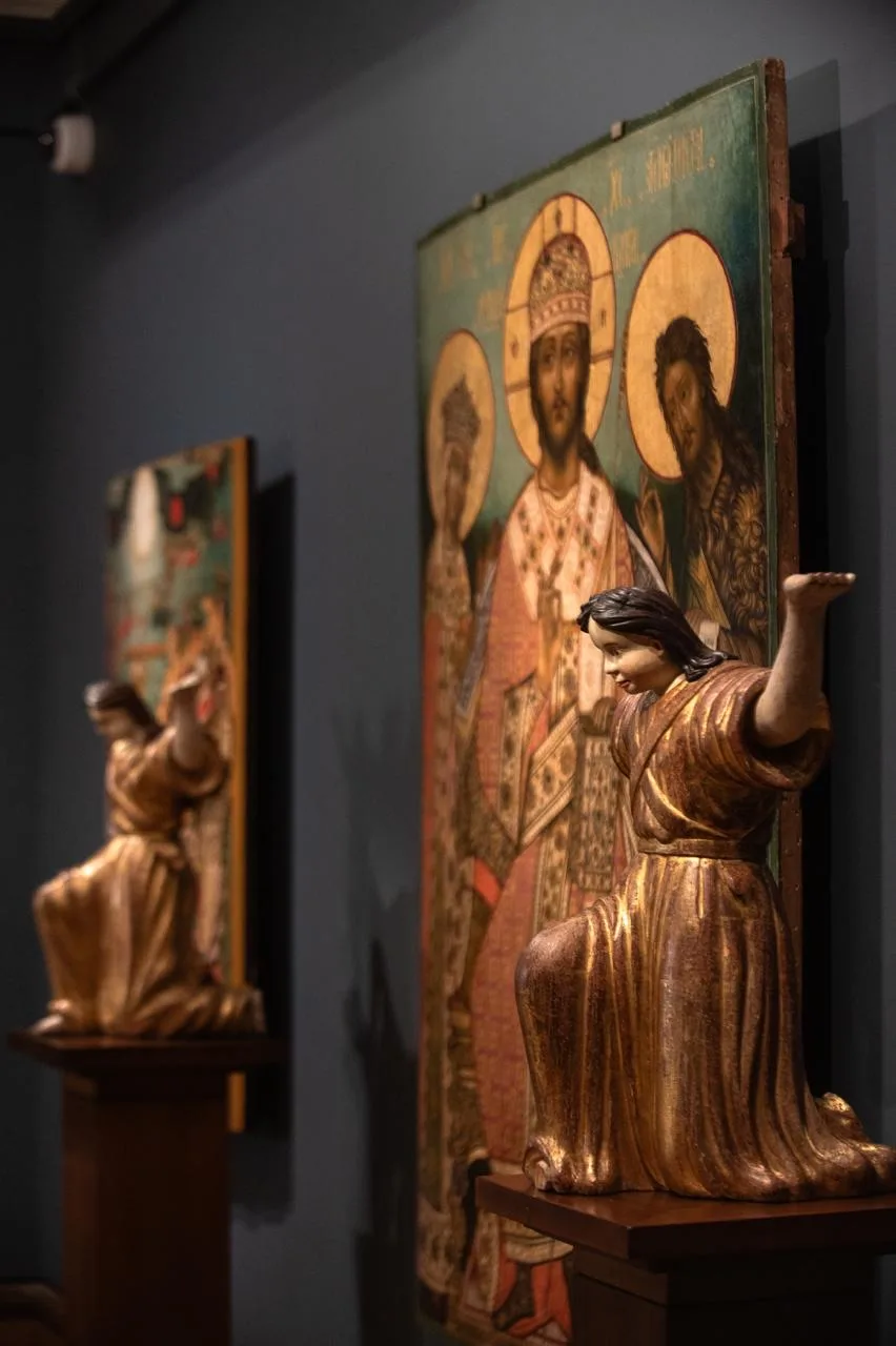 Среди экспонатов – миниатюрные костяные иконы XVIII–XIX веков, работы первых художников-путешественников по Арктике – Александра Борисова и Константина Коровина, а также произведения советских и современных авторов, включая участников полярных экспедиций: Федора Решетникова, Митрофана Берингова и Игоря Рубана.