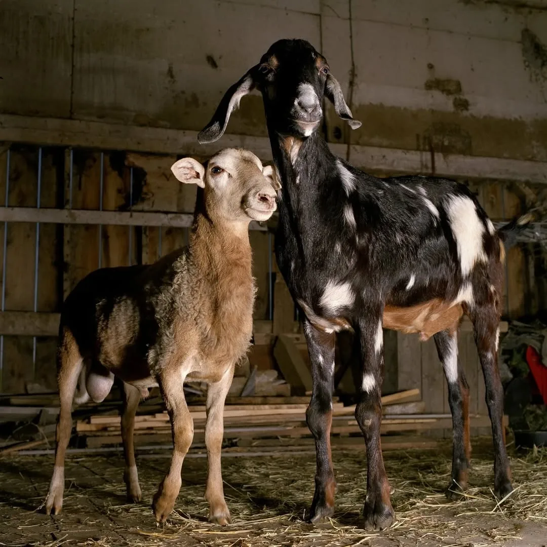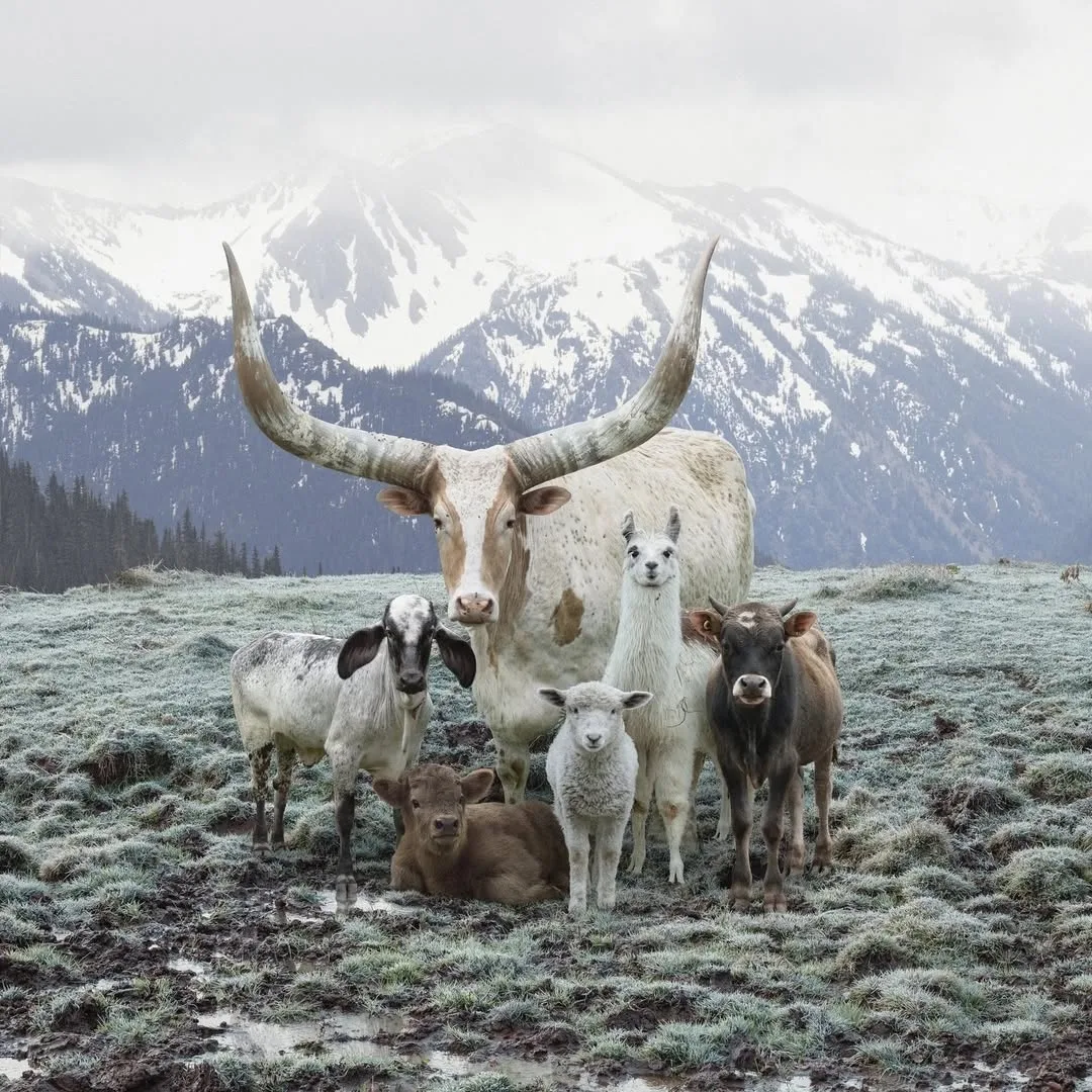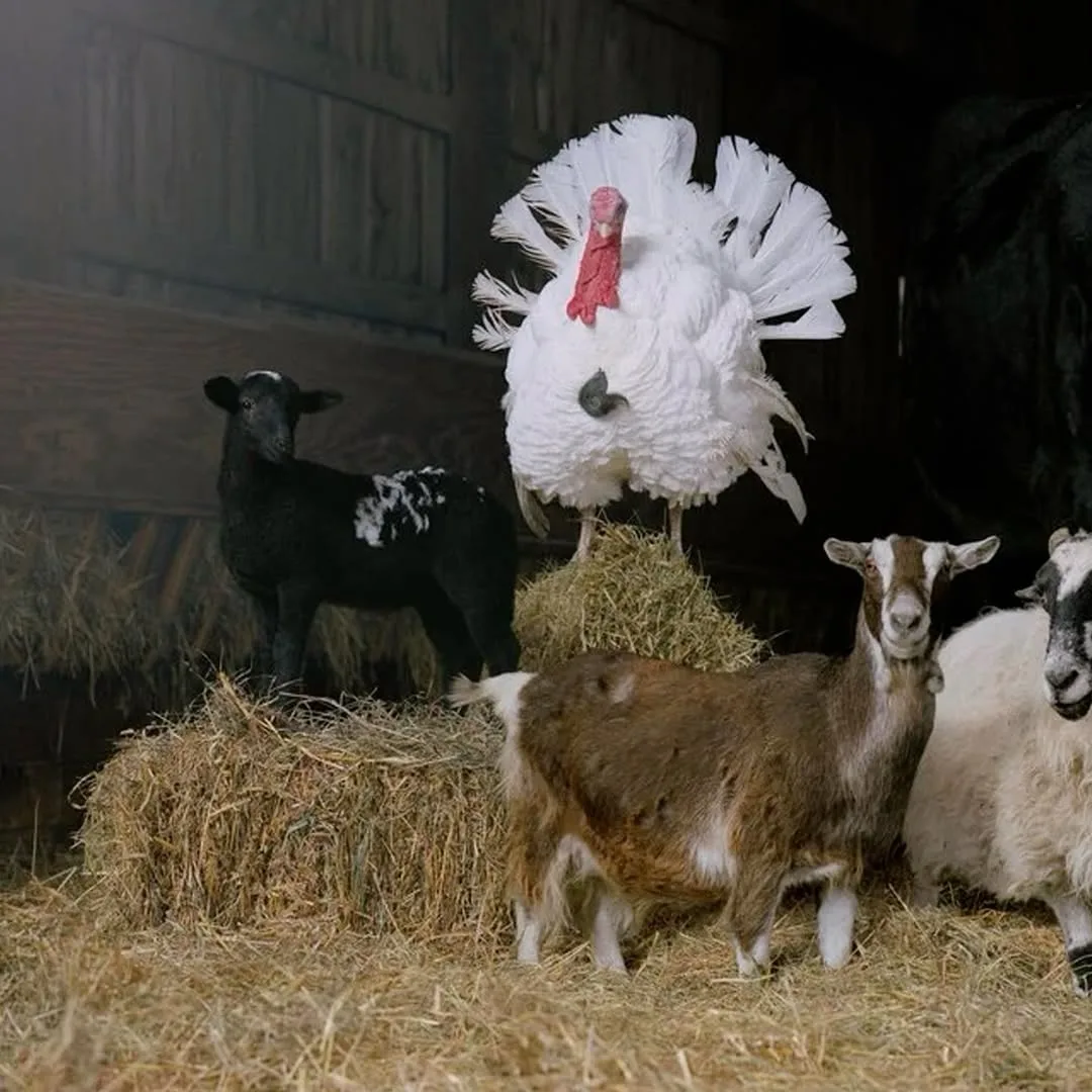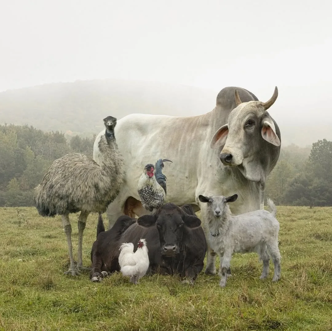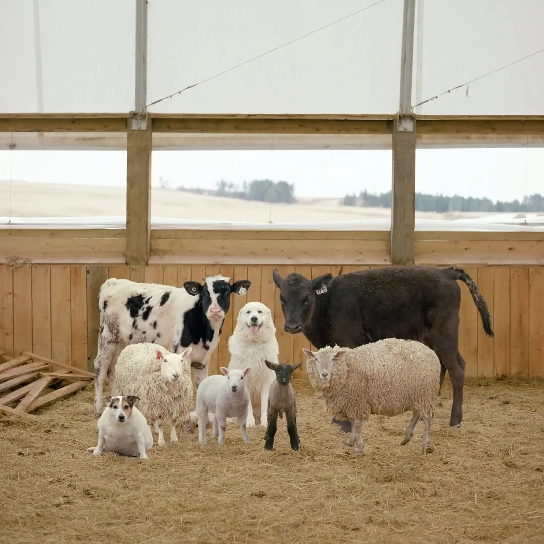 В этой серии представлены фермерские животные в виде поэтапных портретов, созданных по образцу обычных семейных фотографий людей. Используя студийное освещение, специалистов по обработке животных и цифровую композицию, Макиннис создает как индивидуальные, так и групповые портреты коров, свиней, овец, коз и домашней птицы.