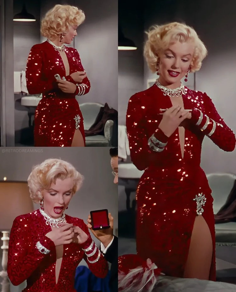 Мэрилин Монро в роли Лорелеи Ли в фильме "Джентльмены предпочитают блондинок" (1954)⠀