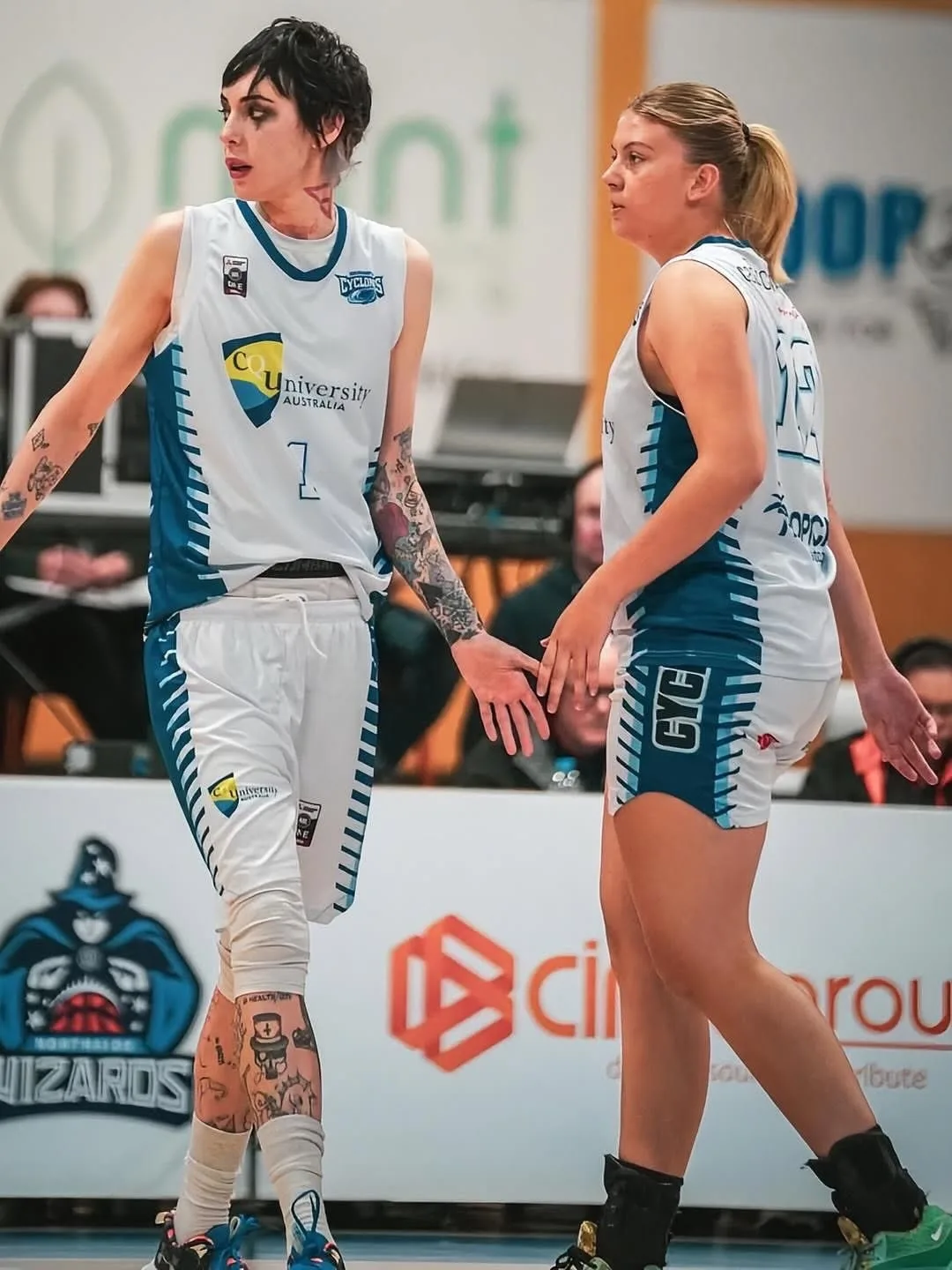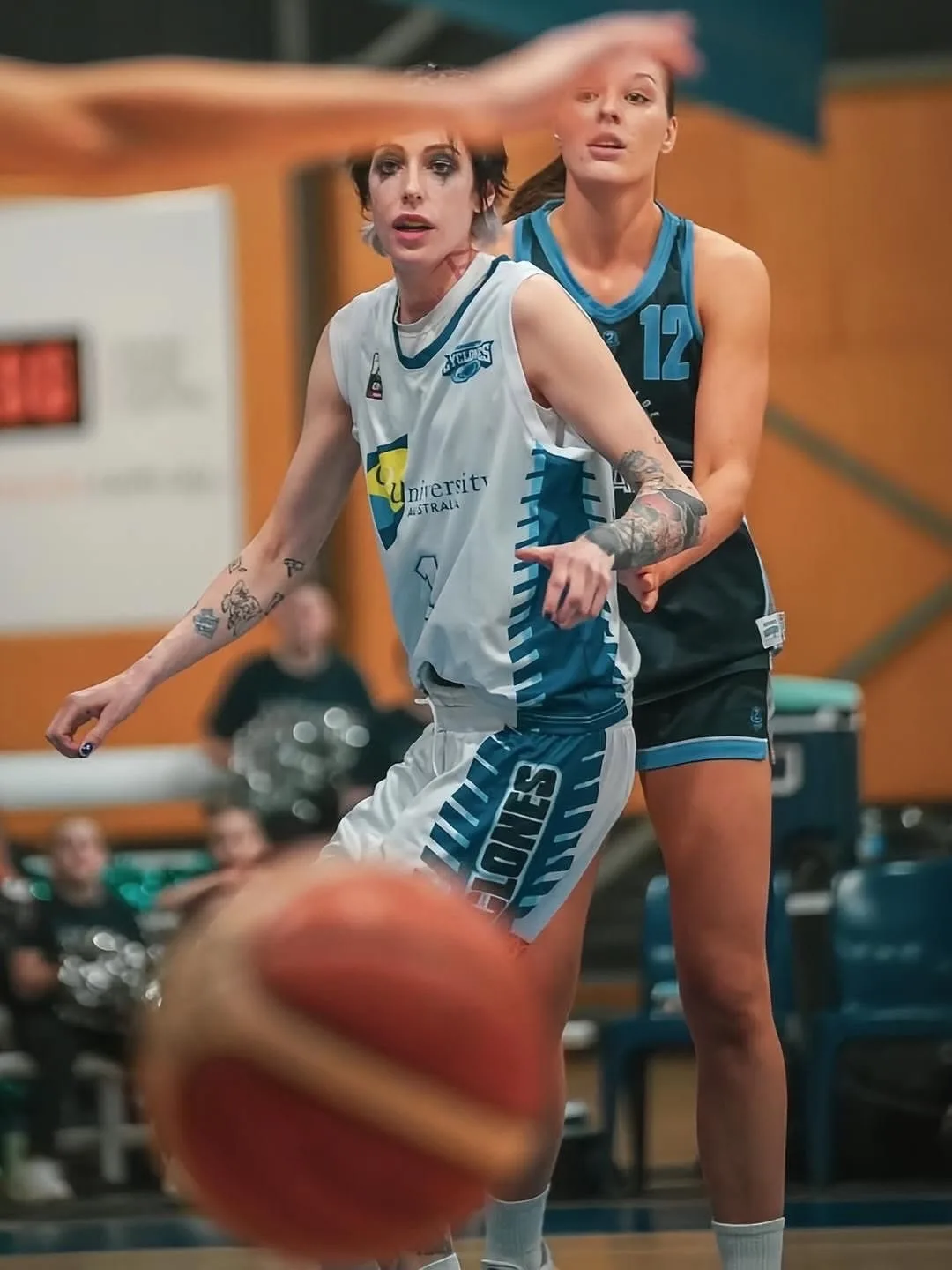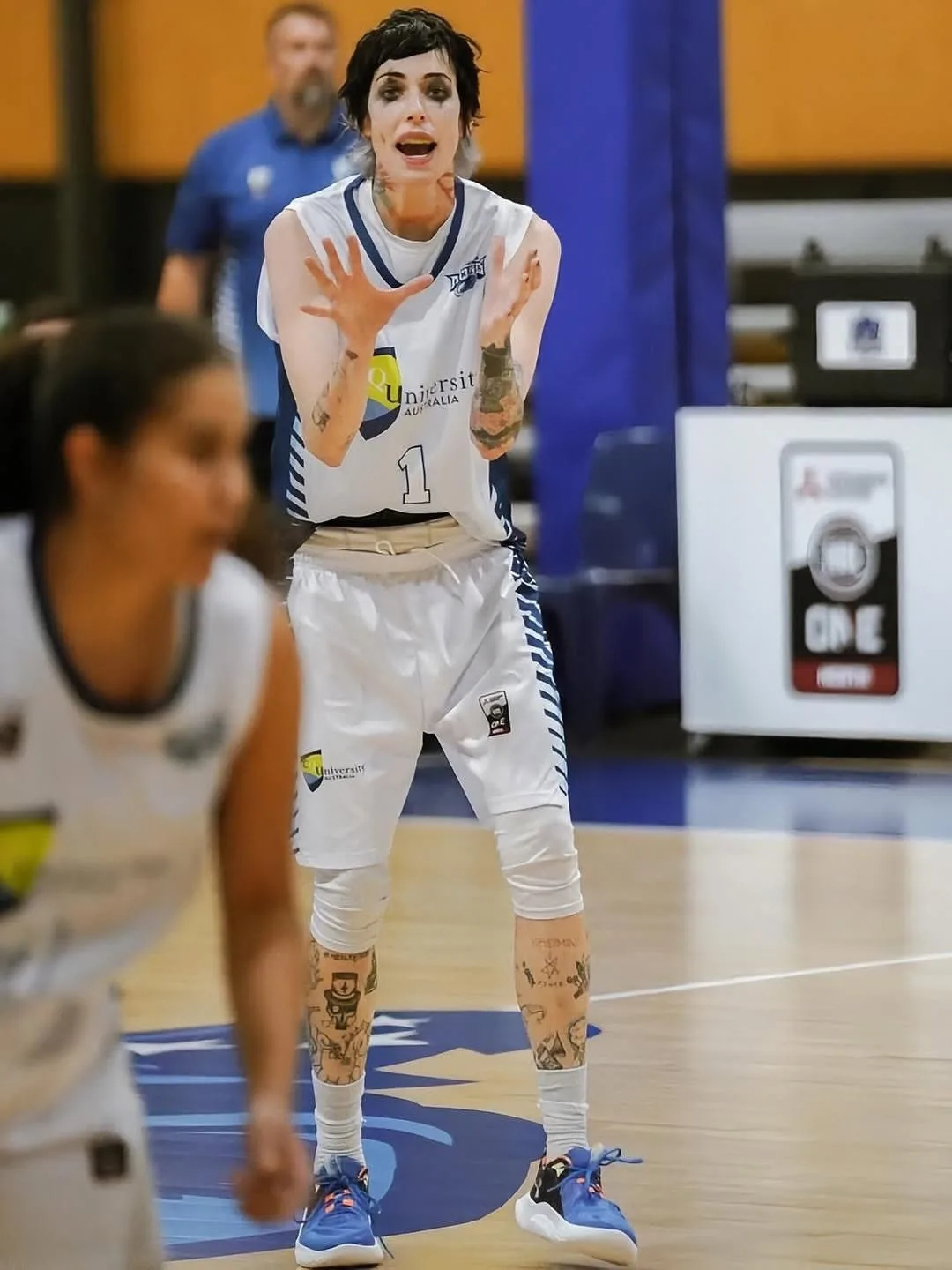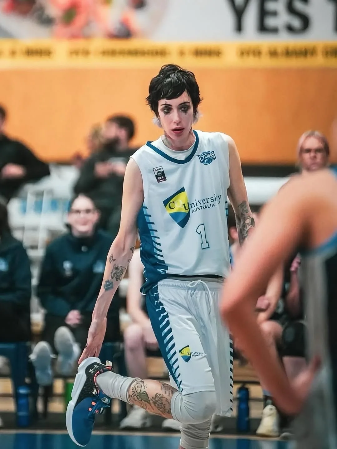 австралийская баскетболистка Кейтлин Мэри Каннингем во время игр наносит макияж в готическом стиле, поскольку в Австралии нет ограничений на макияж в профессиональном или полупрофессиональном спорте.