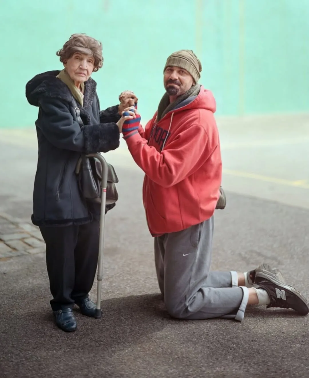 Ренальди приглашал совершенно незнакомых людей позировать вместе, как будто они были хорошо знакомы, часто держась за руки, обнимаясь или даже целуясь, стирая границы между личными отношениями и общественным пространством.