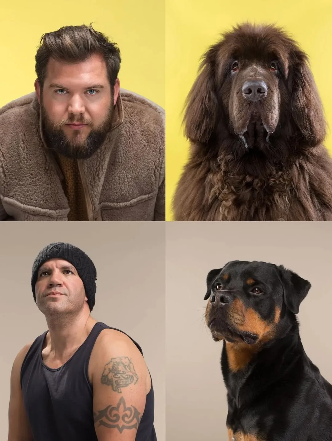 Серия состоит из 50 наборов портретов, на которых изображены собаки разных пород и их владельцы.