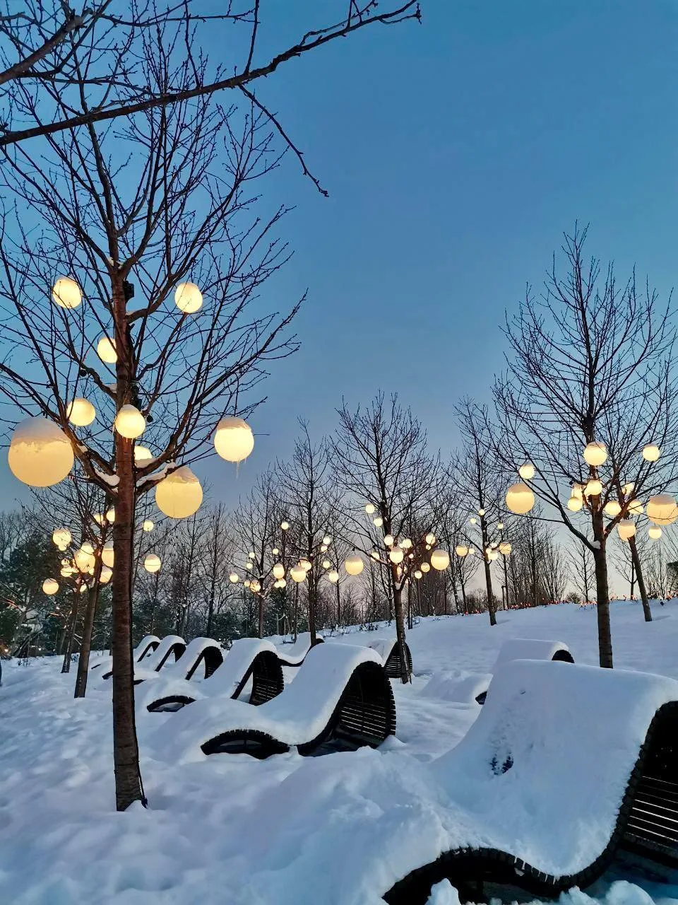 ✨ С первыми сумерками парк Галицкого загорается мягкой подсветкой - выглядит по‑настоящему волшебно.