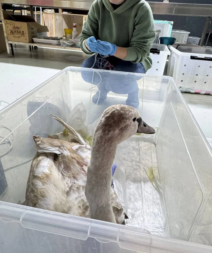 Второго лебедя нашёл и отвёз в клинику неравнодушный мужчина. Оказалось, что у птицы три перелома крыла, ей провели операцию.