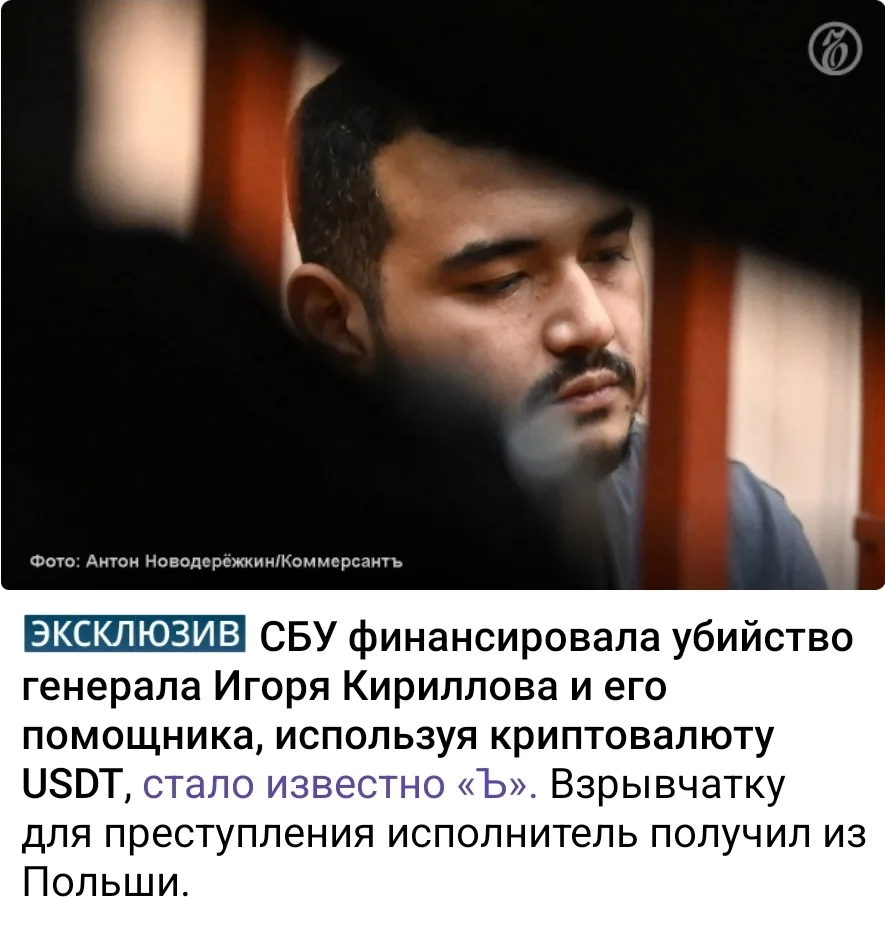 Теракт, в результате которого в декабре 2024 года были убиты начальник войск радиационной, химической и биологической защиты вооруженных сил России Игорь Кириллов и его помощник, СБУ финансировала криптовалютой USDT. Взрывчатку для преступления исполнитель получил из Польши. Об этом сообщает Коммерсантъ.