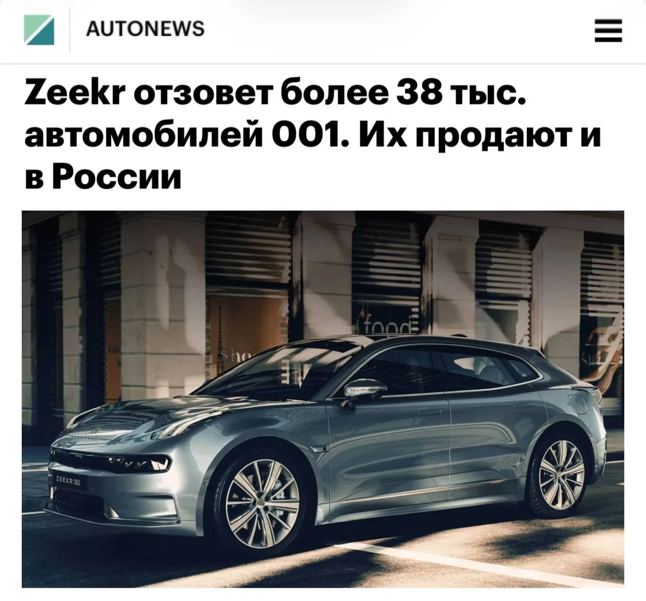 Zeekr объявил крупный отзыв — под него попали больше 38 тысяч электрокаров, включая популярную в России модель 001.