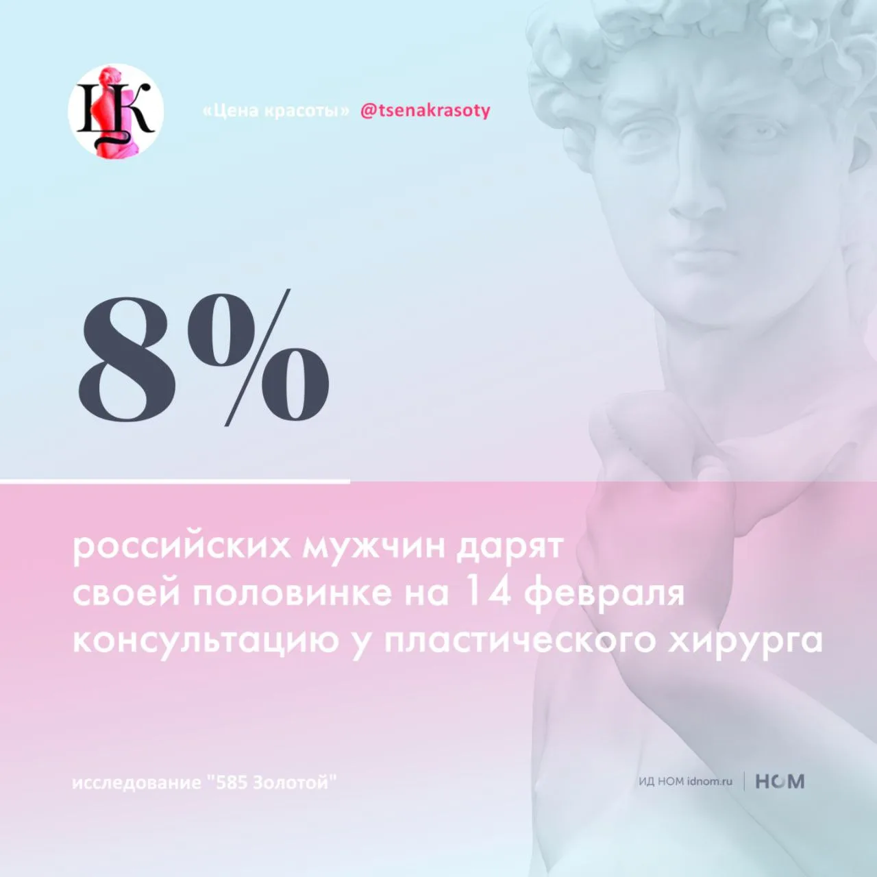 - Среди рейтинга самых популярных подарков на День святого Валентина нас заинтересовали техника (включая стайлеры Dyson и другие бьюти-гаджеты) – 69% и консультация у пластического хирурга в качестве подарка – 8%. В последней цифре не видим ничего возмутительного и уверены, что это ответ на запрос самих женщин. Также популярный подарок – подарочный сертификат в магазин косметики – 28%.