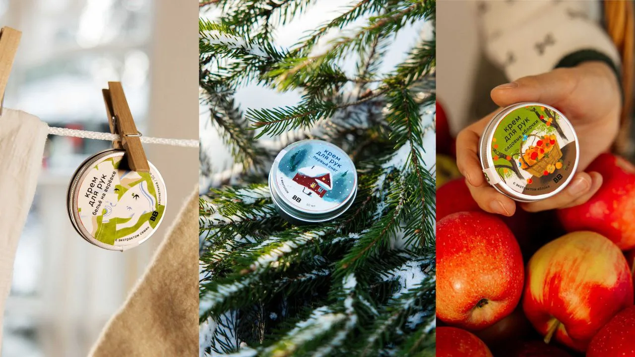 В эту же ностальгическую линейку вошли кремы с ароматом первого снега и садовых яблочек в оформлении художниц из Санкт-Петербурга Ани и Вари Кендель. По задумке бренда, не только отдушки, но и формы жестяных баночек должны отсылать покупателей к детству, когда похожими баночками пользовались их мамы и бабушки. Так что целевая аудитория запуска – очевидно, миллениалы.