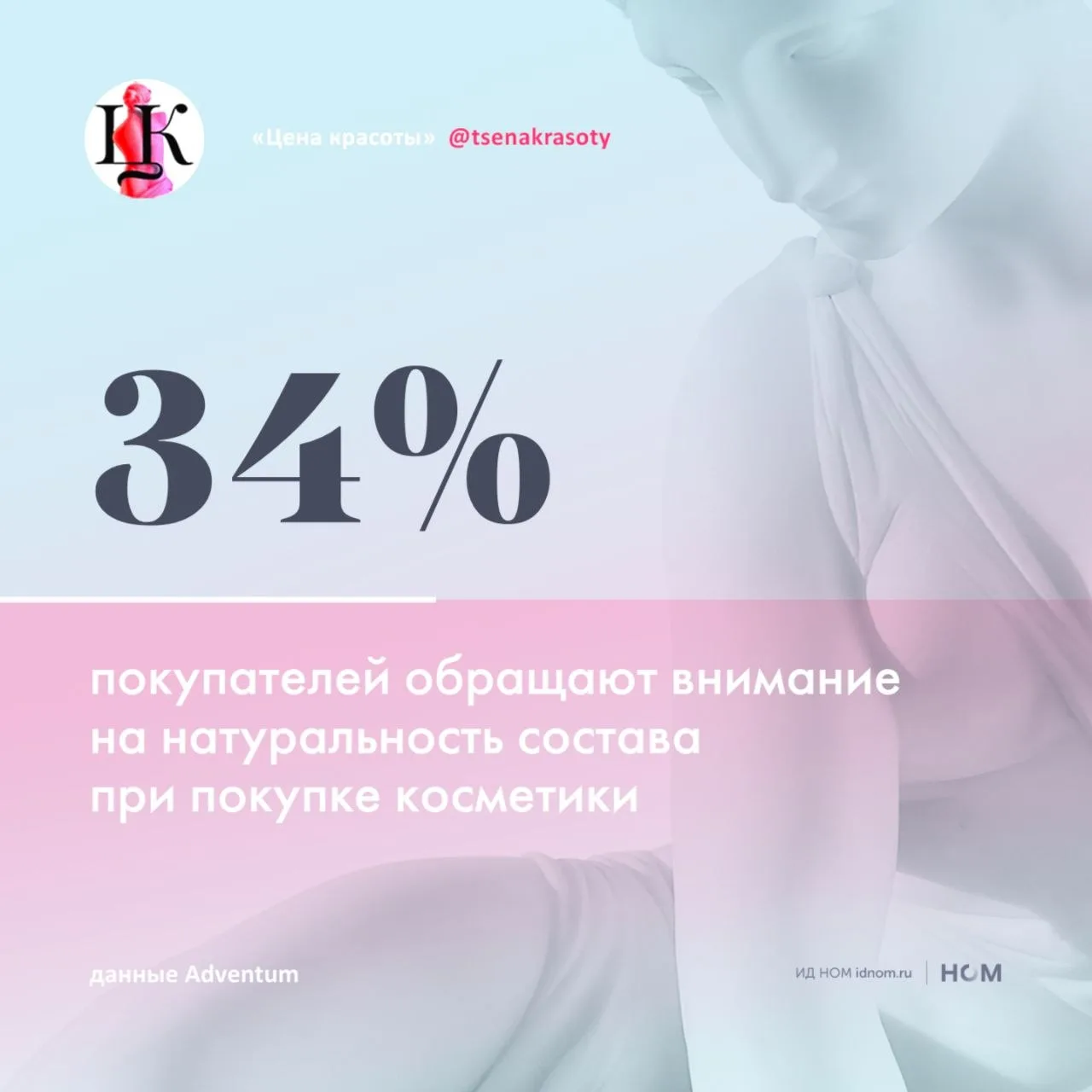 ▫️По данным агентства Adventum, ключевые ориентиры россиян при покупке косметики – цена (44%), натуральность состава и безопасность для кожи (по 34%), соответствие типу кожи (33% женщин и 18% мужчин) и гипоаллергенность (27%). Схожее распределение критериев характерно и для декоративной косметики.