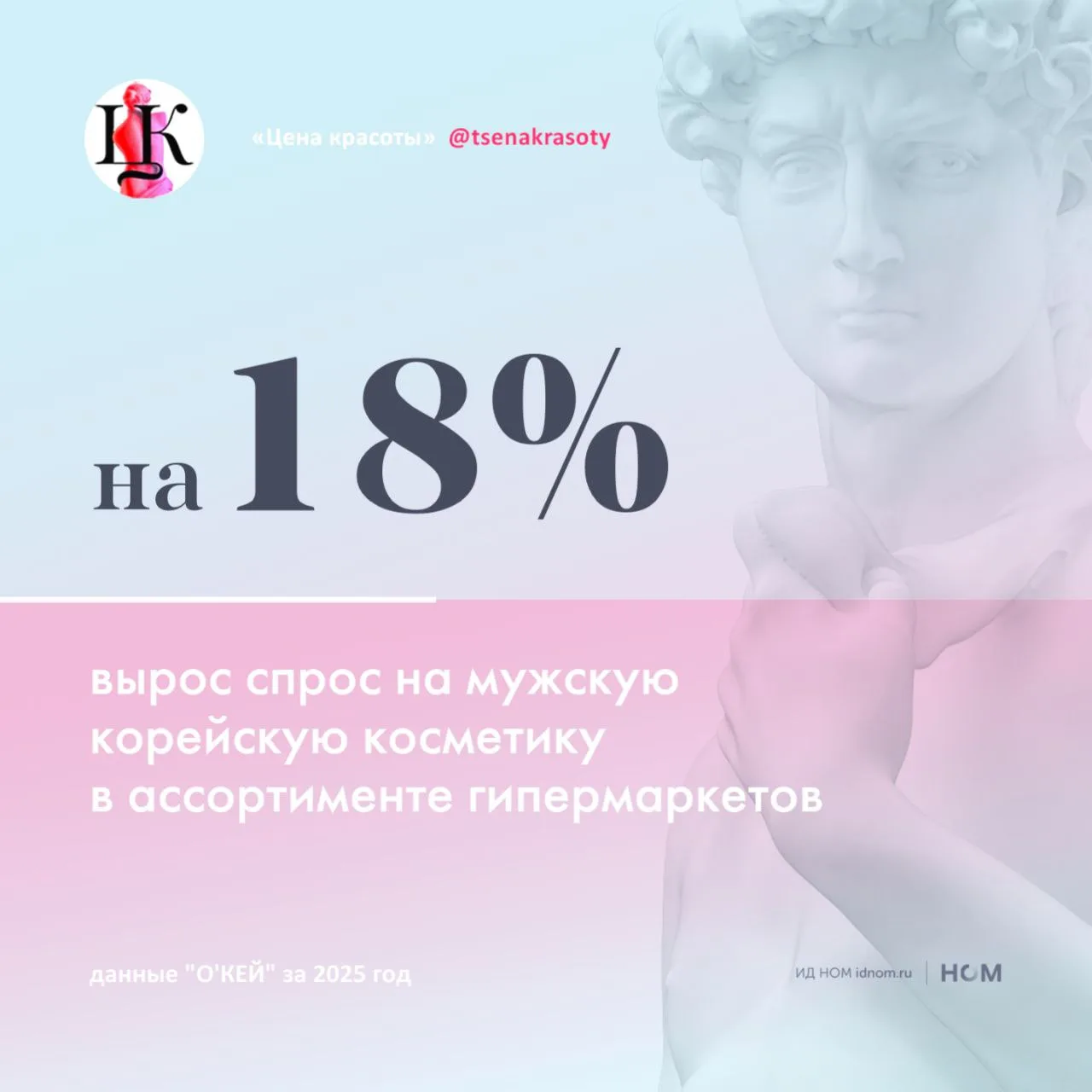 - Что касается аудитории K-beauty, то её рамках укрепляется значимость женской аудитории в возрасте 45+. Также показал рост сегмент мужской корейской косметики: на 18% относительно 2024 года. Причём спрос формировали не только базовые средства, но и нишевые позиции: сыворотки против выпадения волос и антивозрастные средства.
