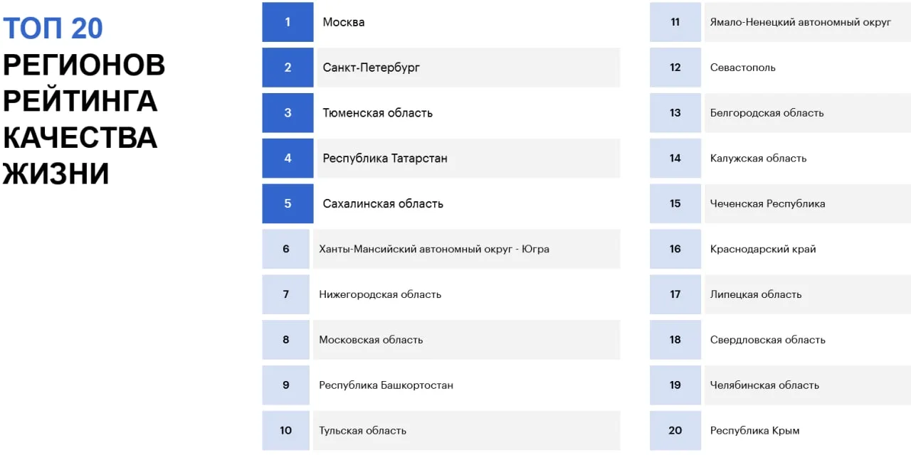 Рейтинг по итогам 2025 года подготовило Агентство стратегических инициатив. Он основан на опросах людей, статистике и геоаналитических данных.