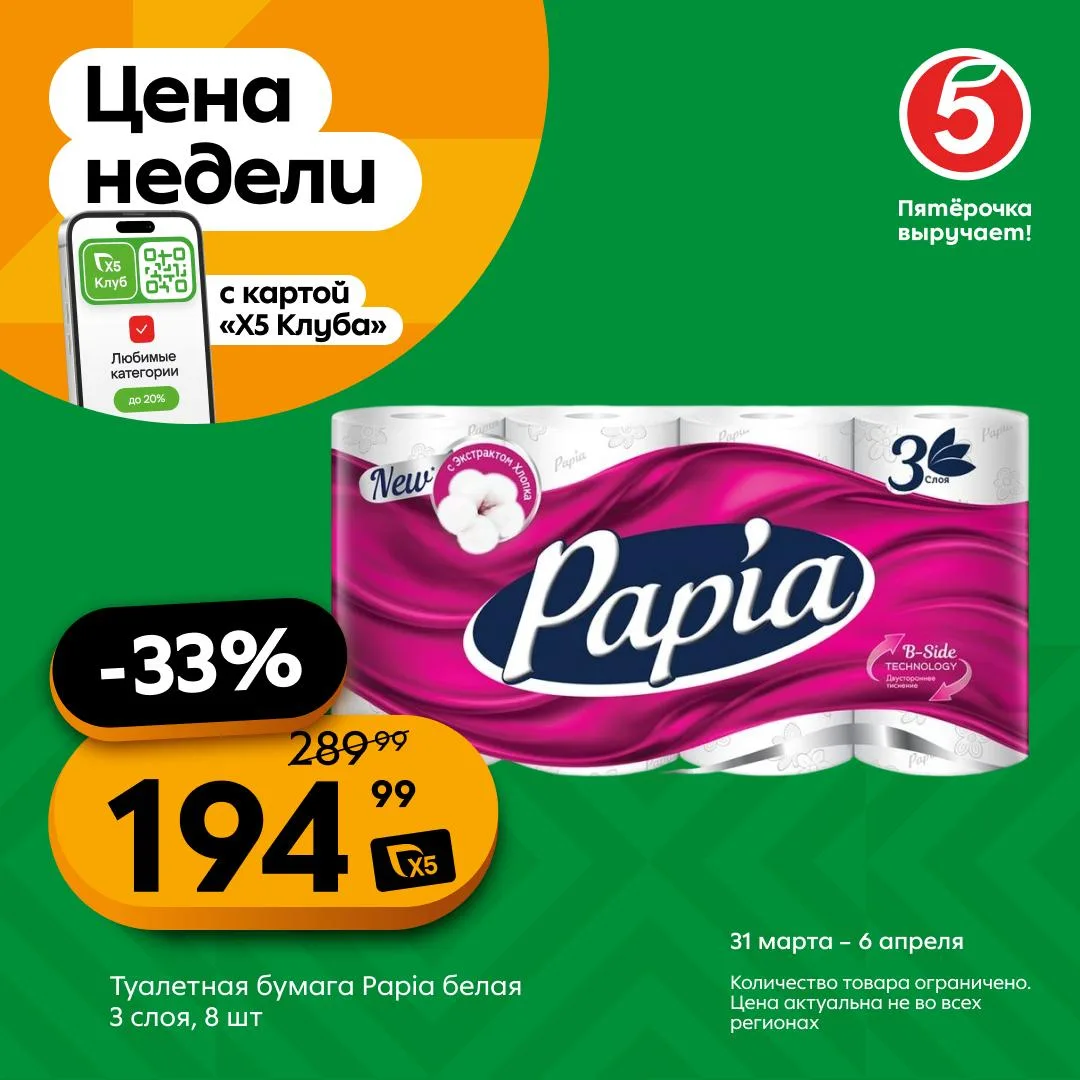«Пятёрочка» выручает! Все товары по акции на неделю с 31 марта по 6 апреля здесь.