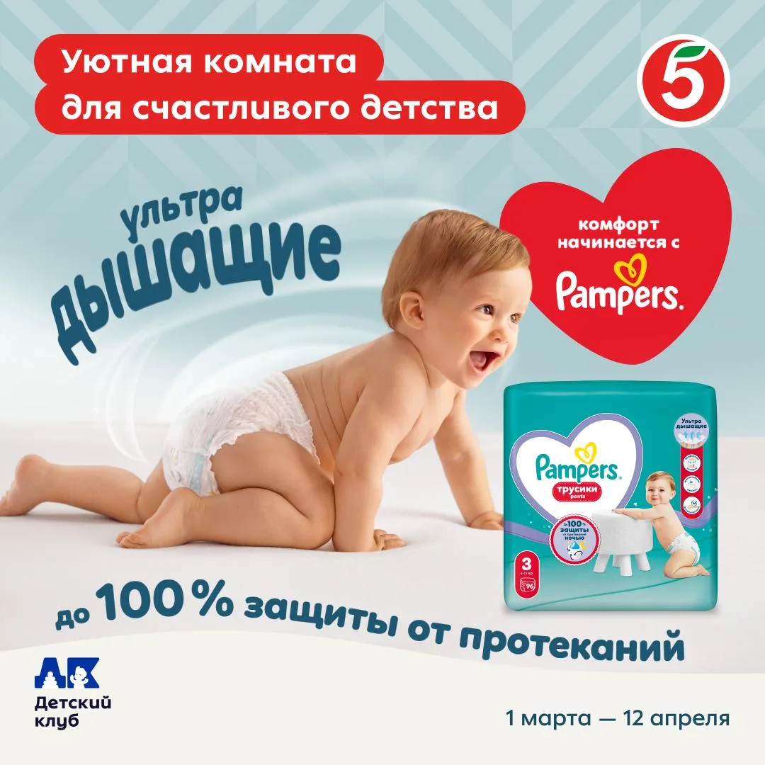 А ещё вы можете поучаствовать в еженедельном розыгрыше годового запаса подгузников Pampers и 20 000 баллов для участников «Детского Клуба». Удачи!