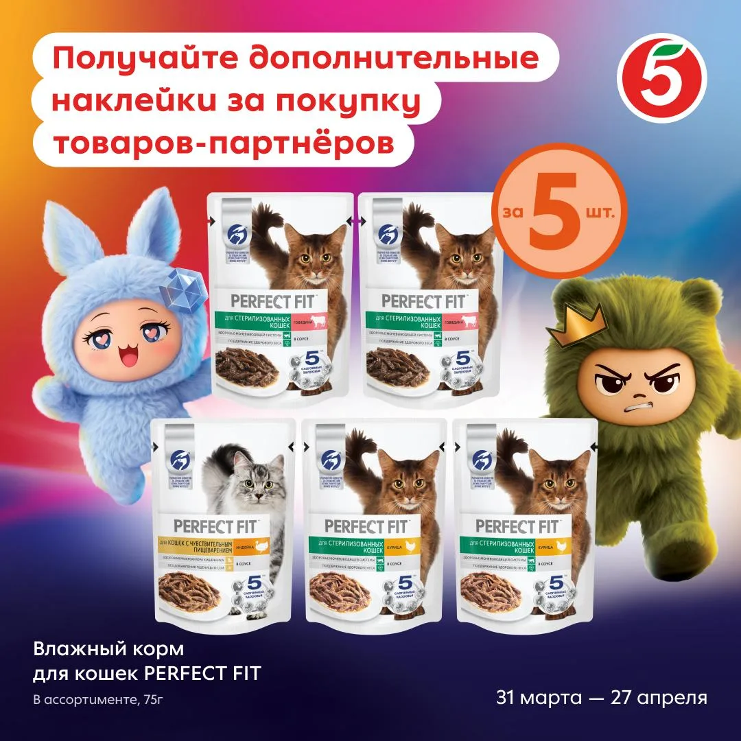 🐾 Влажный корм для кошек Perfect Fit от пяти штук в чеке.