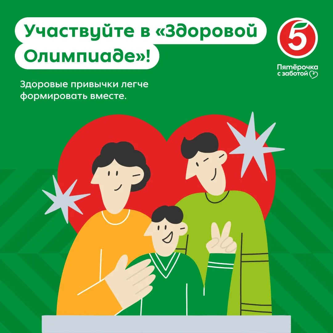 «Пятёрочка» уже в третий раз проводит «Здоровую Олимпиаду», и вы, конечно же, приглашены на этот праздник ЗОЖа. Участвовать могут абсолютно все, и взрослые тоже. Выполняйте задания, узнавайте новое, становитесь дружнее и выигрывайте крутые призы.