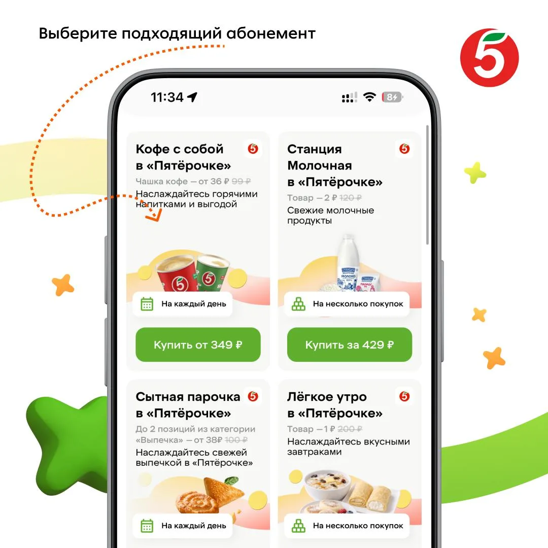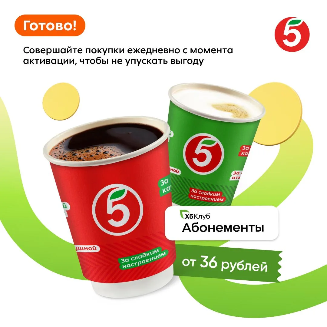 Кофе от 36 рублей, выпечка от 38 рублей и свежая молочка от 77 рублей: как вам такое вообще?! Это цены с абонементами «Пятёрочки»*, которые вы можете оформить вот прямо сейчас. Например, по абонементу «Станция Молочная» на 30 дней: