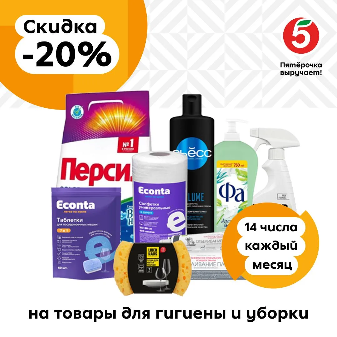 Скидка 20% на шампуни, гели для душа, бытовую химию и товары для уборки! 🌸