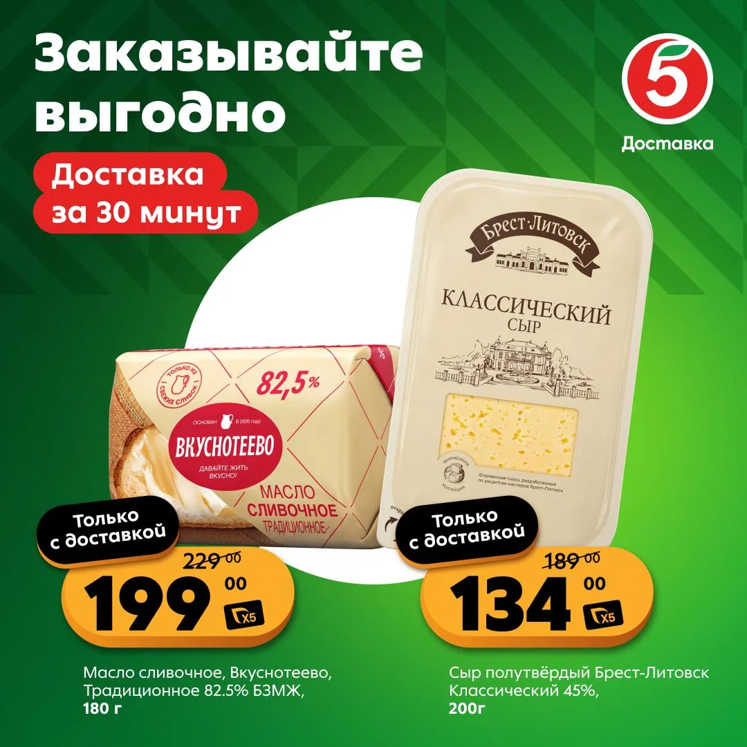 У нас в доставке сейчас мощные скидки до 40% на масло и сыр до 6 апреля, так что самое время пополнять запасы. Доставка от 30 минут!