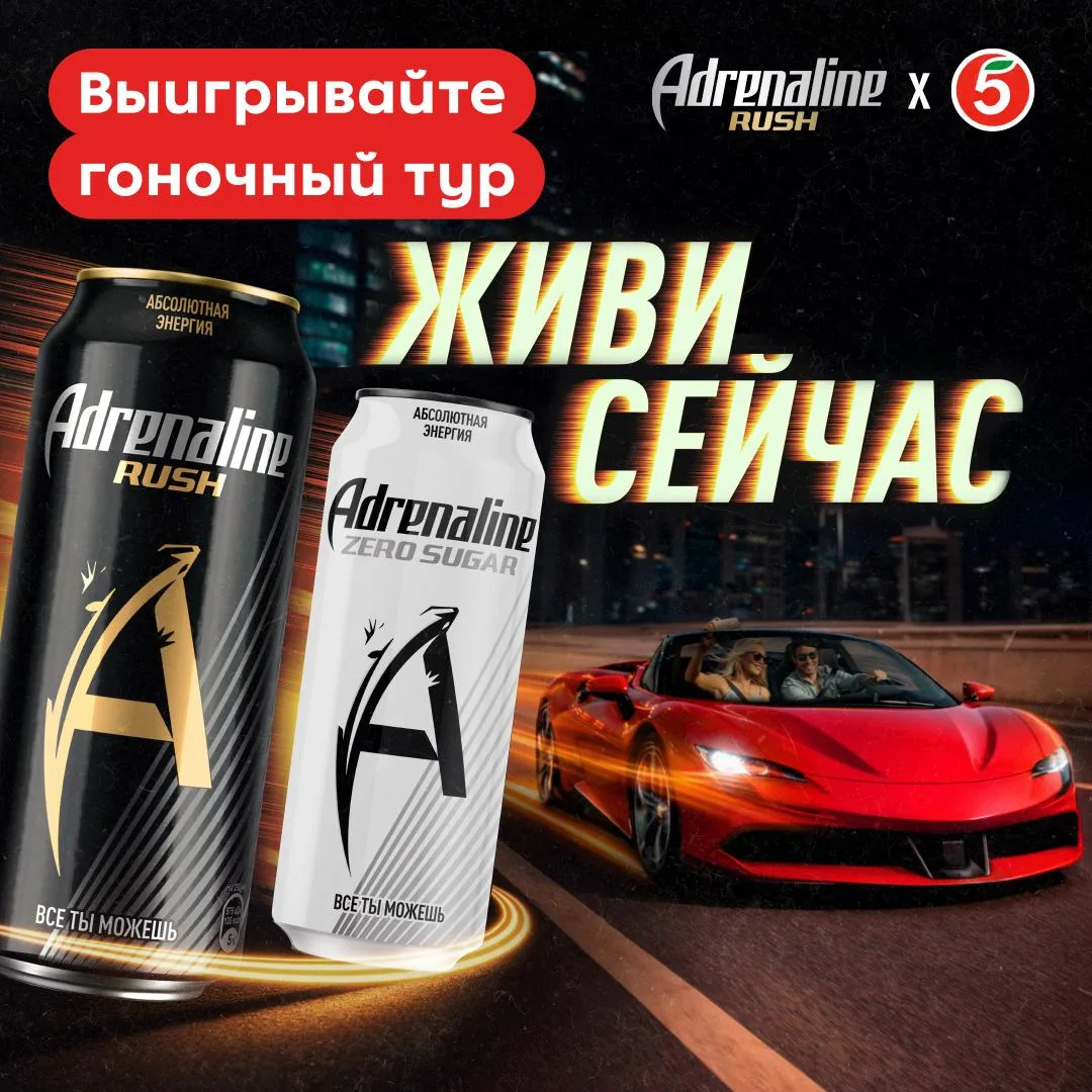 🏎️ Покупайте с картой «Х5 Клуба» Энергетический напиток «Адреналин Раш»* и другие товары, которые участвуют в акции.