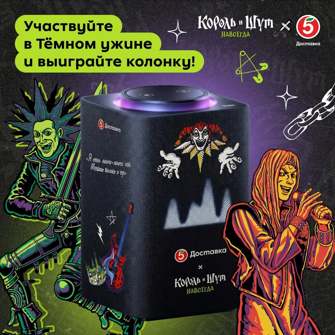 Сегодня уже третий «ужин» из пяти. Поторопитесь забрать свою колонку Макс с Алисой в эксклюзивном дизайне коллаборации доставки «Пятёрочки» и фильма «Король и Шут. Навсегда».