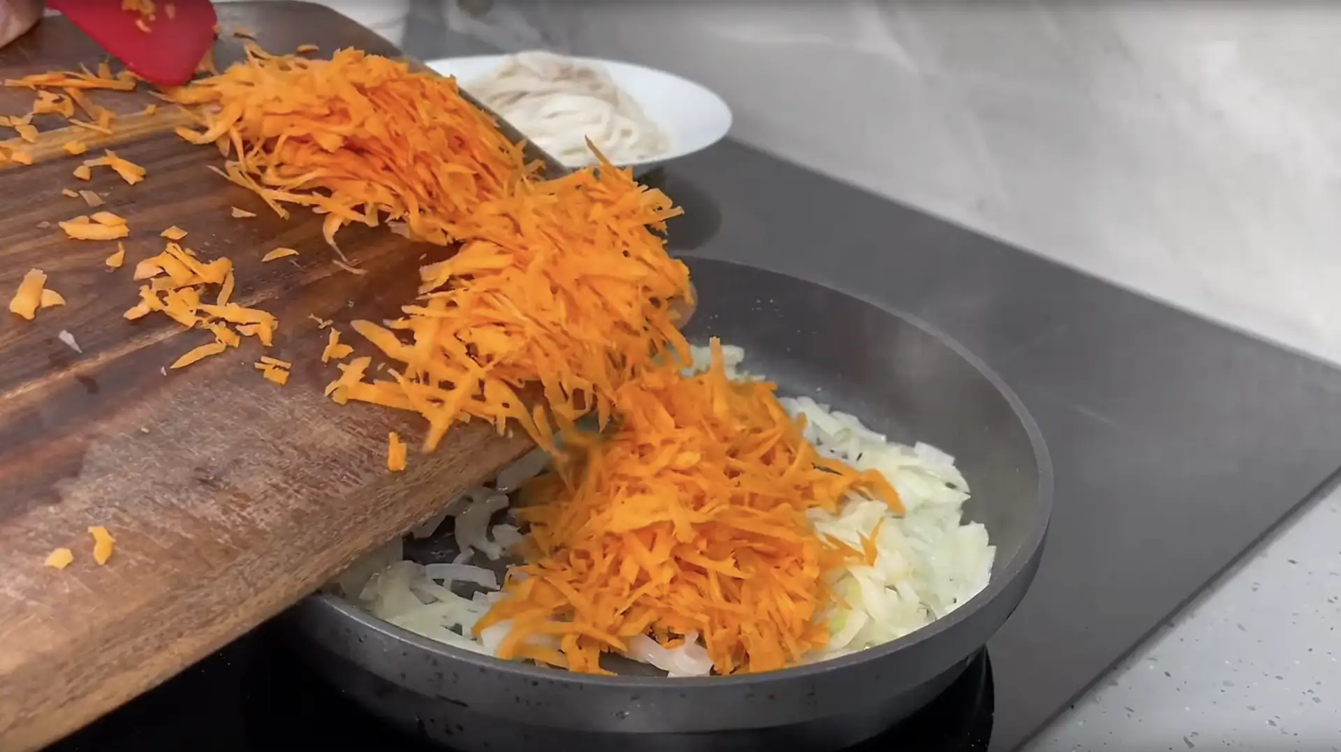 1. Лук режем не мелко, а полукольцами или четвертинками — они дадут текстуру.