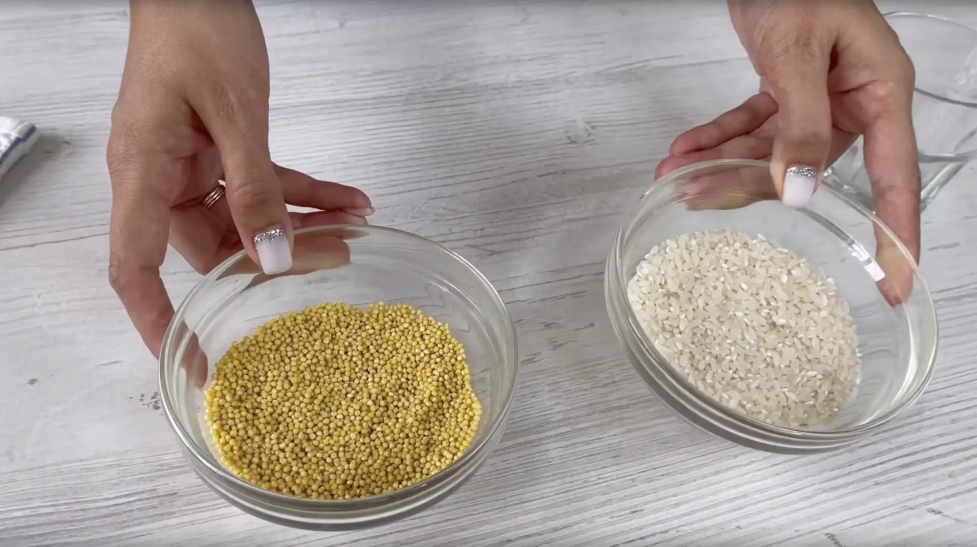 1. Пшено тщательно промойте, пока вода не станет прозрачной. Рис аналогично. Это важно для идеальной текстуры!