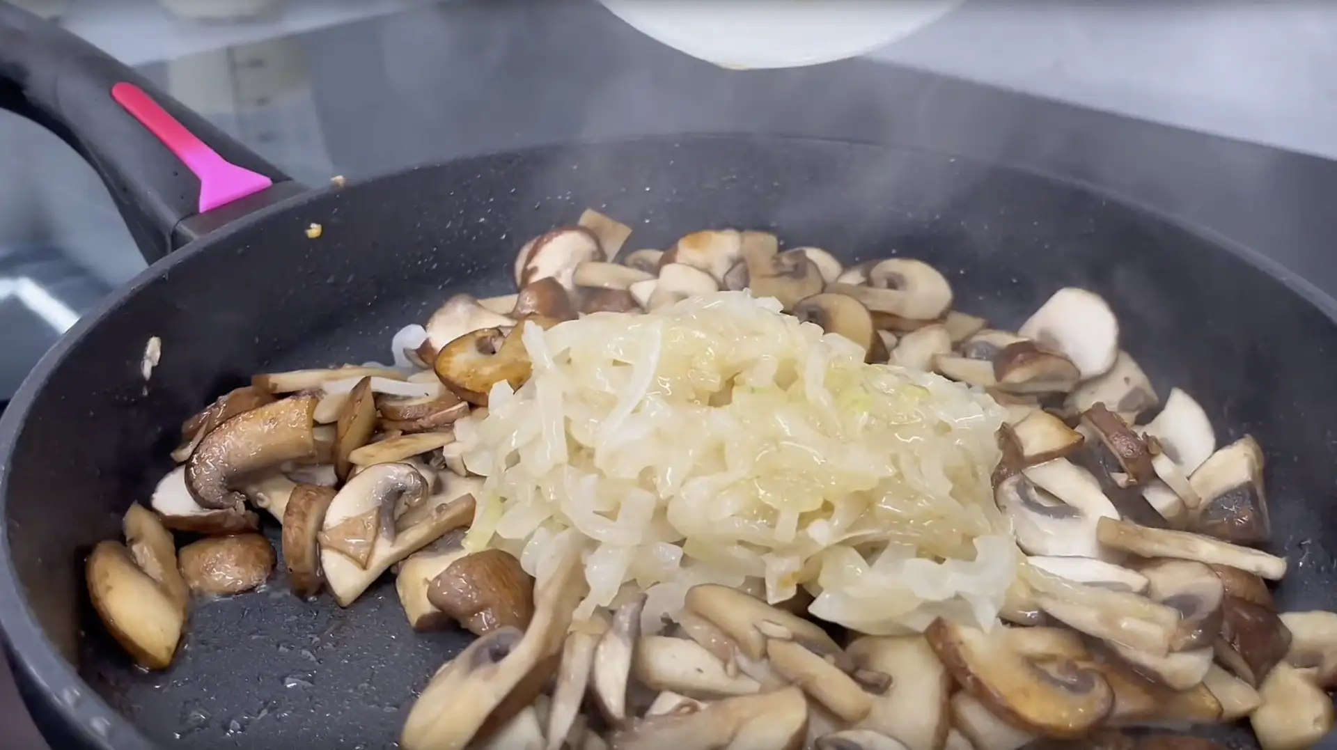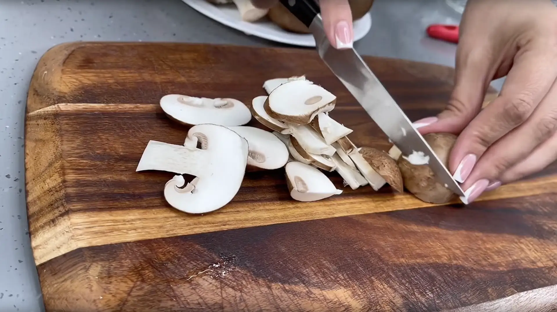 2. Шампиньоны — пластинками, чтобы чувствовался каждый кусочек.