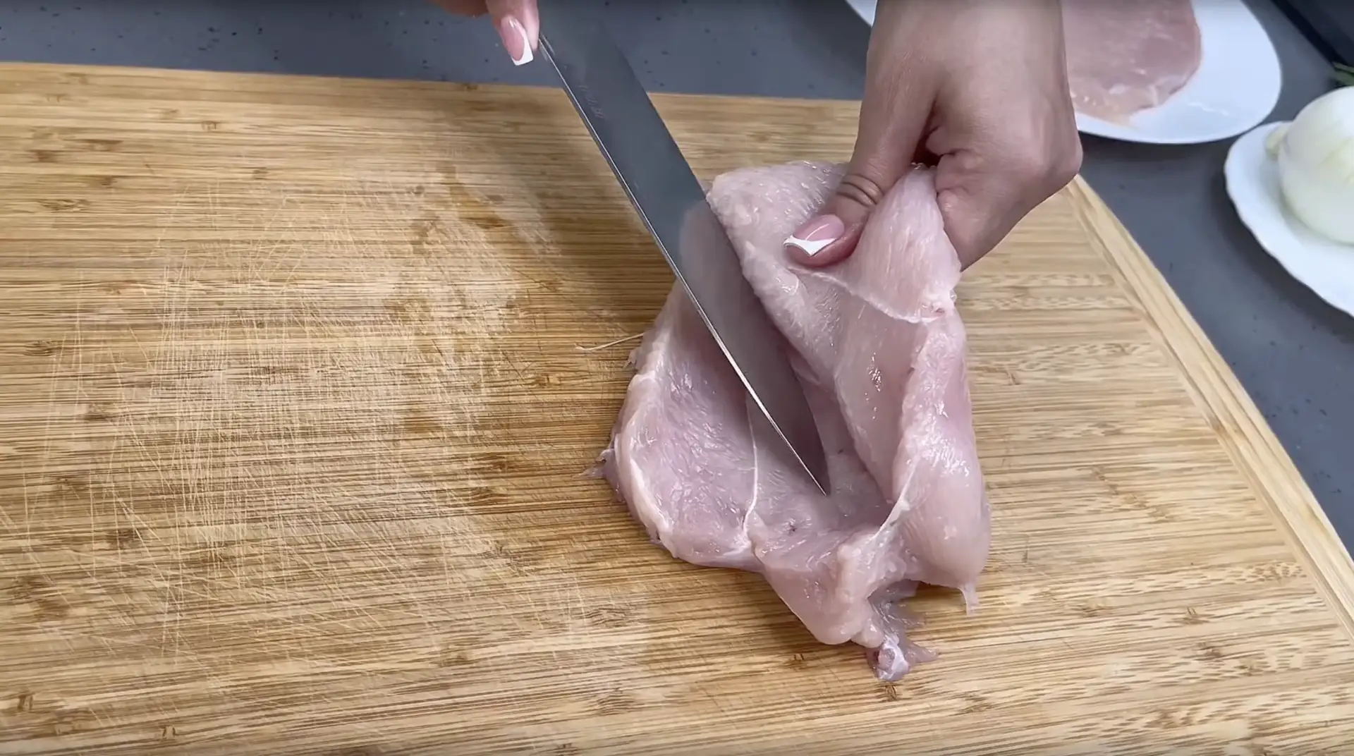 Первое и главное правило: равномерная толщина. Возьмите филе куриной грудки. Аккуратно срежьте малое филе — из него потом можно сделать потрясающие наггетсы для детей. Теперь сделайте неглубокий надрез вдоль толстой части, но не до конца — как будто раскрываете книгу. Накройте пищевой пленкой и... проявите умеренную силу! Отбивать нужно не для того, чтобы превратить мясо в пюре, а чтобы добиться одинаковой толщины по всей площади. Это гарантия равномерной прожарки.