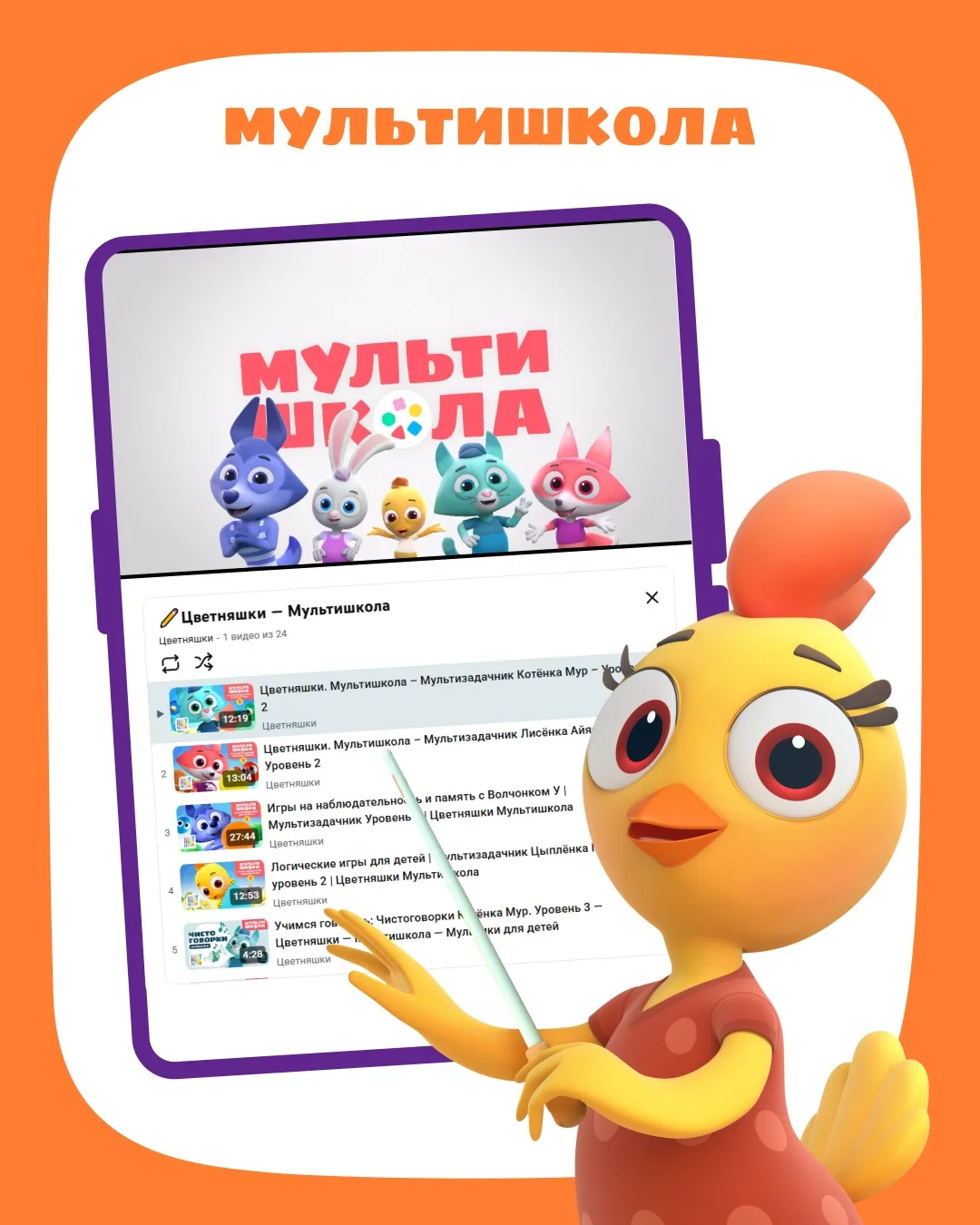• мультишкола с любимыми героями (видеоформат и учебные пособия),