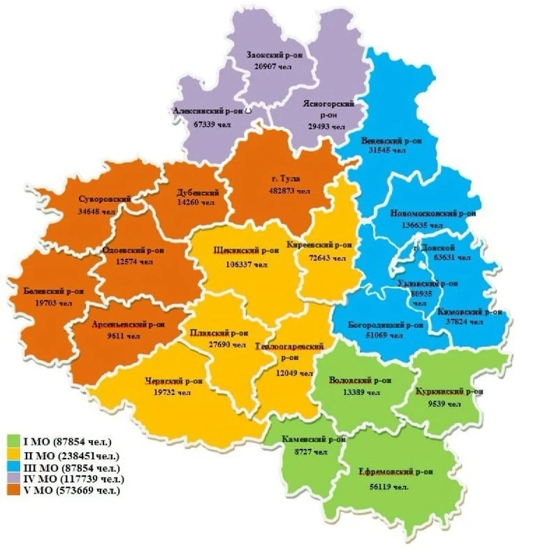 🔵Западного округа (Тула, Ленинский, Дубенский, Одоевский, Суворовский, Белёвский, Арсеньевский районы);