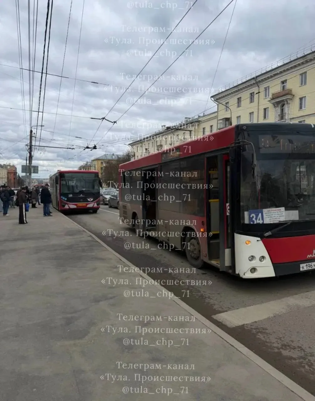 Автобус №34 не смог безопасно перестроиться в соседнюю полосу и задел зеркало заднего вида автобуса №18.