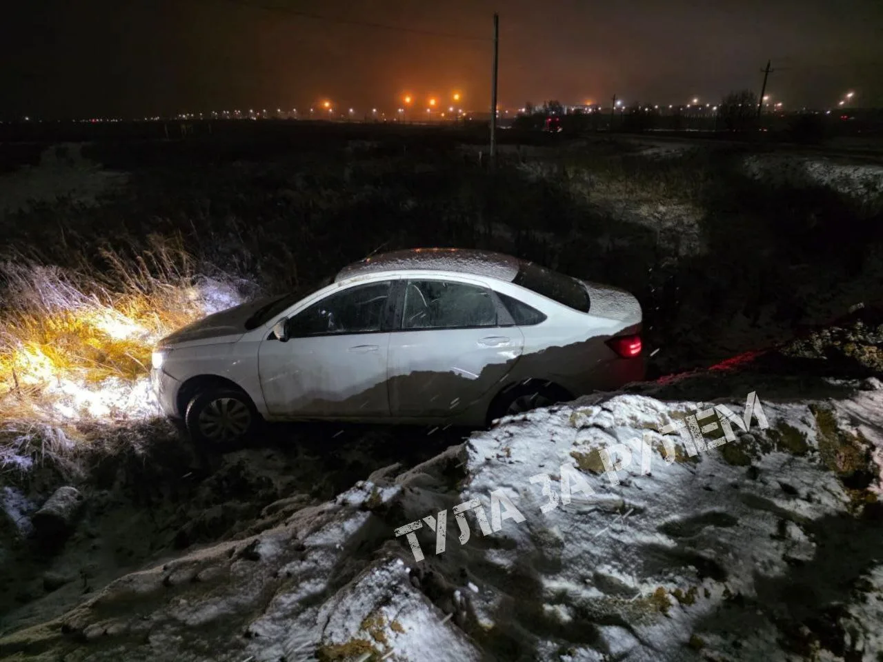 В Узловой шофёр потерял контроль над машиной и съехал в придорожный ров.