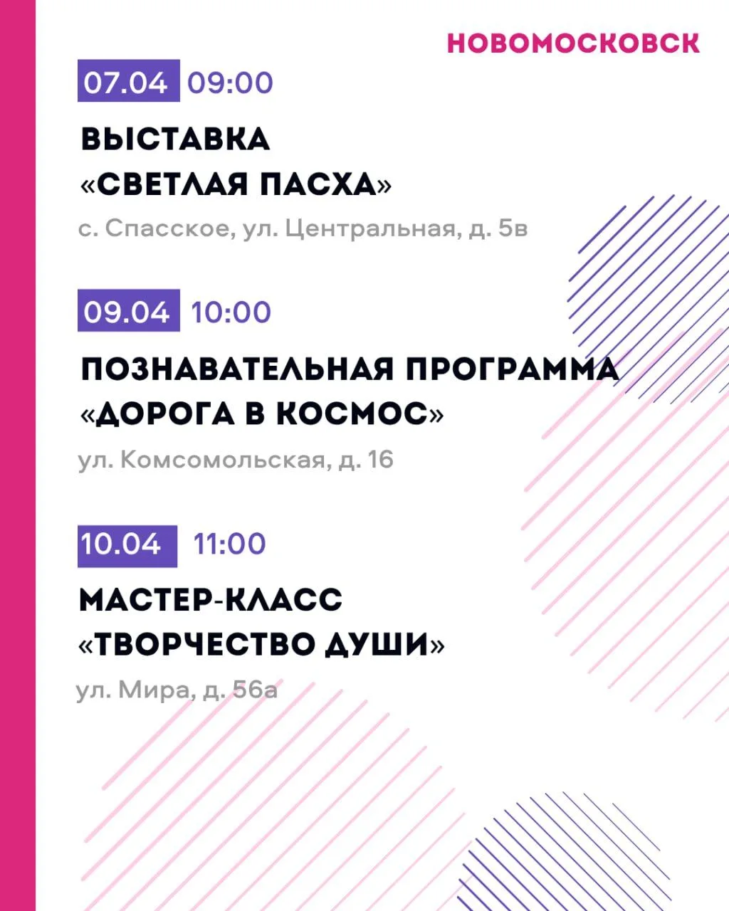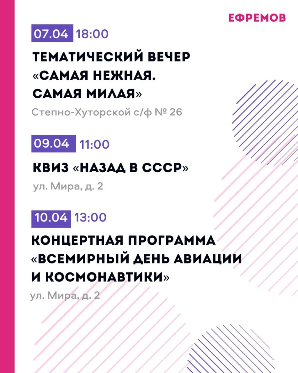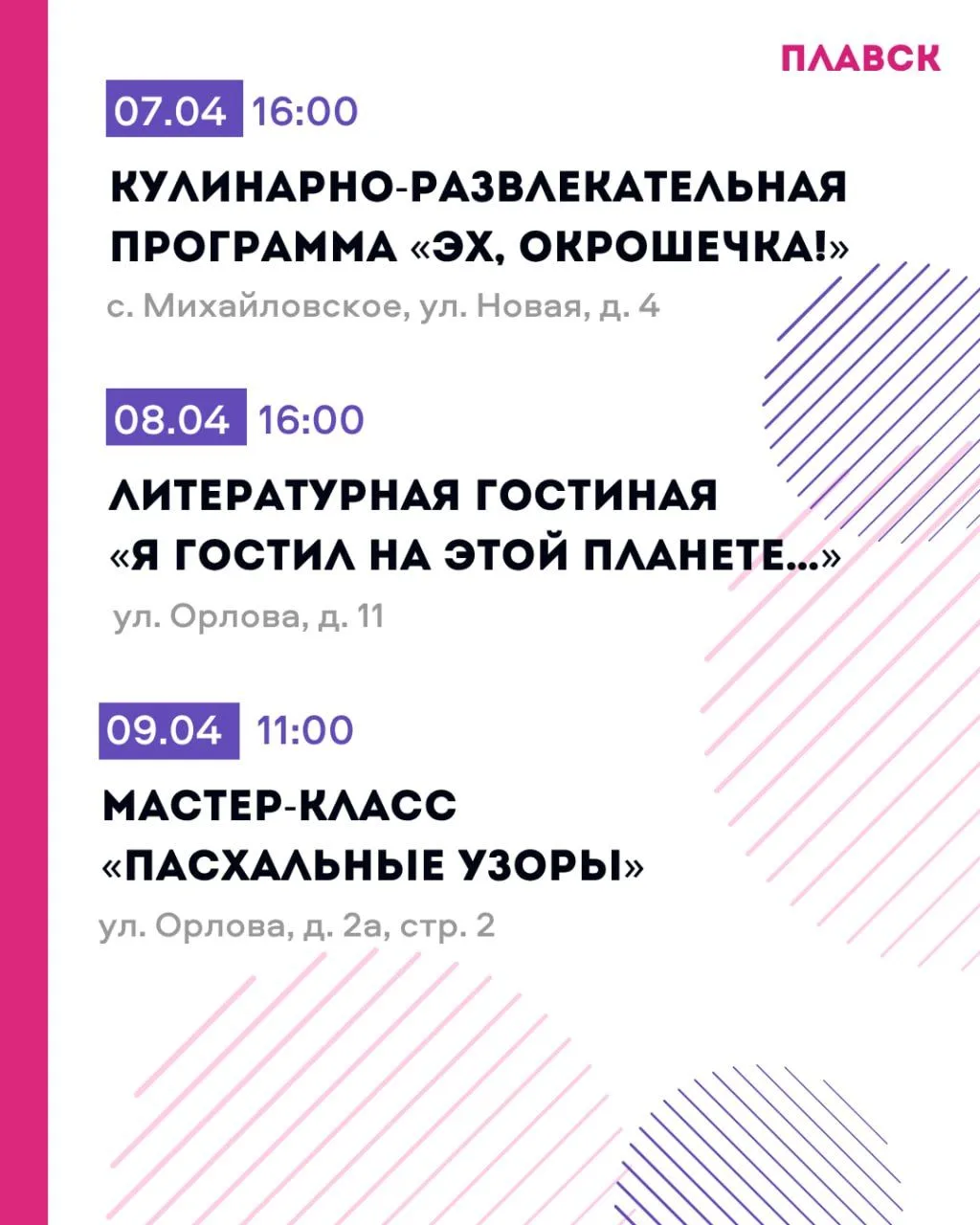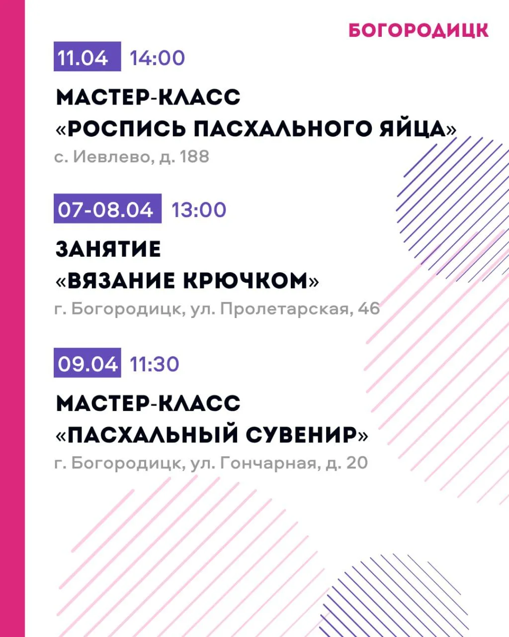 Полная афиша мероприятий будет доступна с 15 апреля на официальном сайте министерства культуры Тульской области и в социальных сетях муниципалитетов.