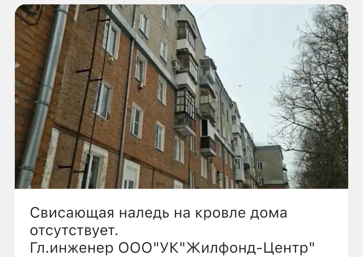 ❗️Хотите анекдот? Управляющая компания отчиталась об отсутствии наледи на крыше здания в Узловой, после того как лёд сошел в нескольких метрах от детей