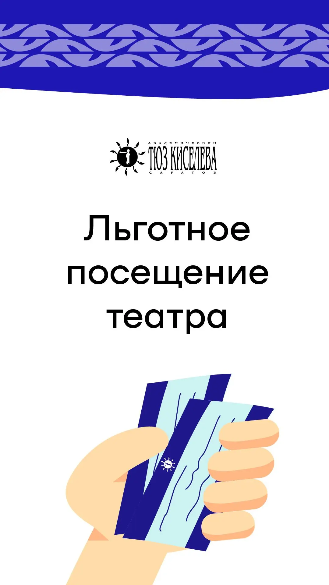 🔸 Правила льготной программы Саратовского ТЮЗа смотрите здесь https://www.tuz-saratov.ru/upload/official/novoe-polozhenie.pdf