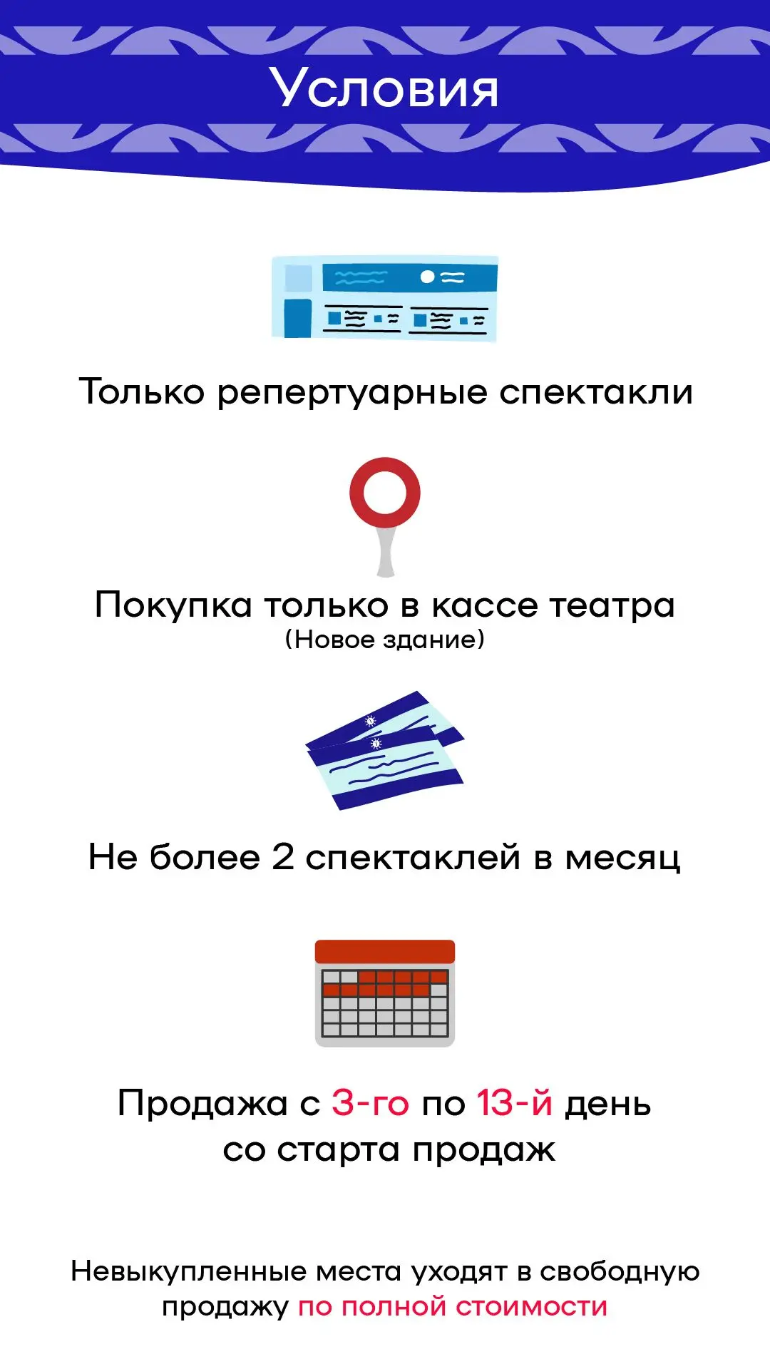 🔸Льготные билеты доступны только в кассе Нового здания театра
