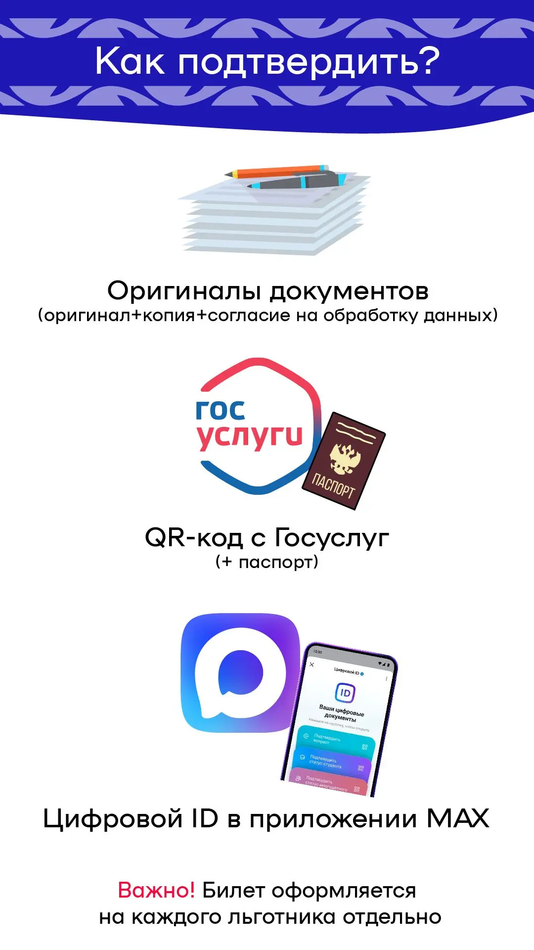 🔹 Используйте сервис «Цифровой ID»: при покупке льготных билетов вместо бумажной справки покажите кассиру QR-код из приложения MAX