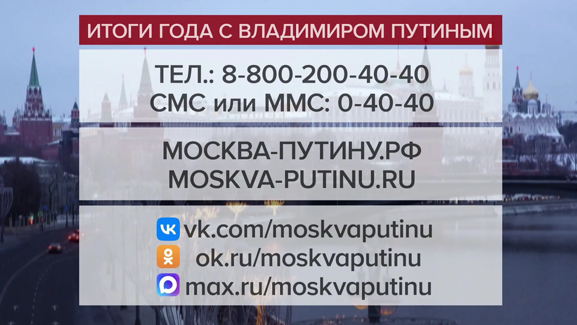Количество обращений на программу «Итоги года с Владимиром Путиным» — более миллиона.