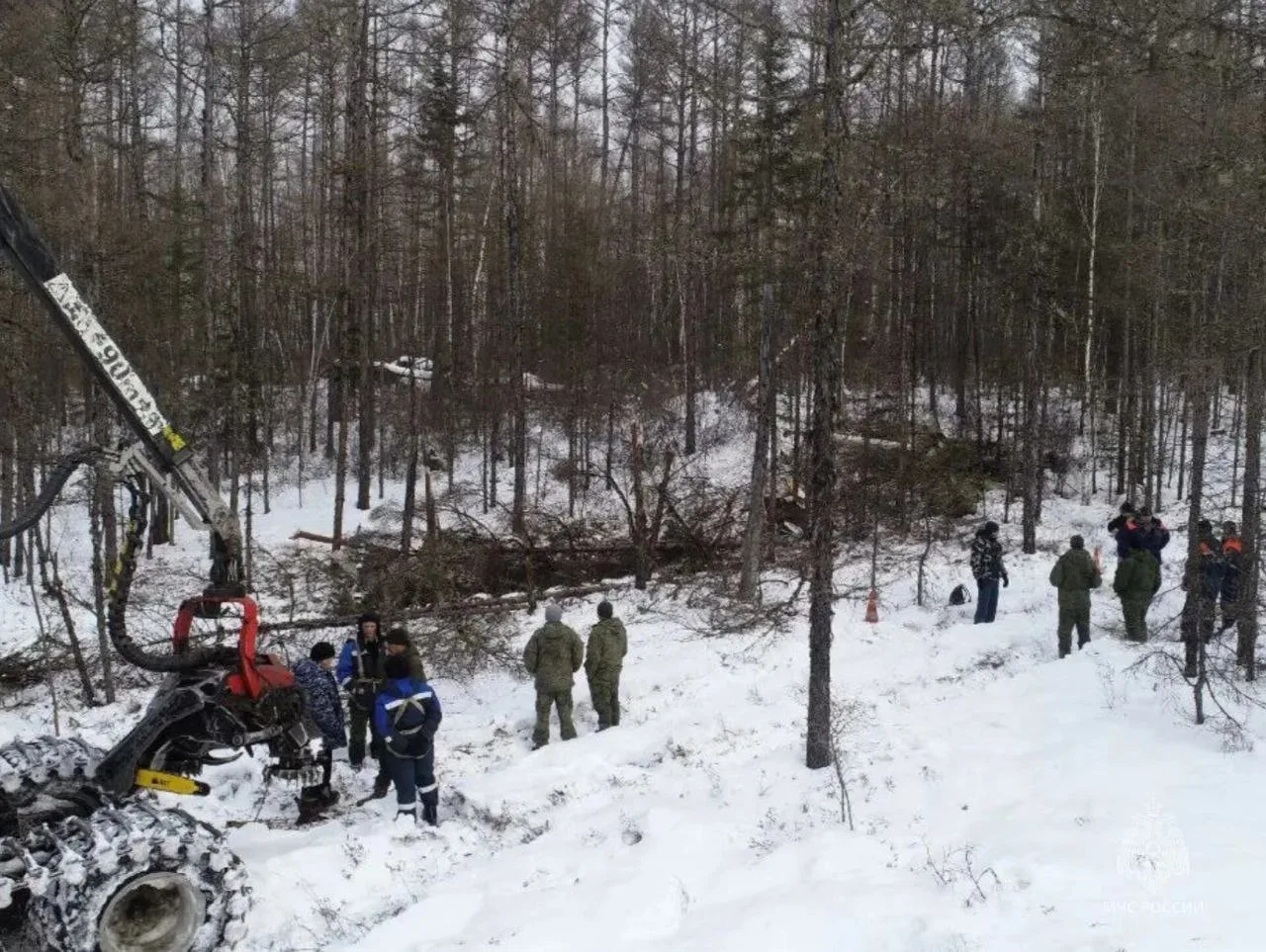 Первые кадры с места падения вертолета в Амурской области. Среди обломков фюзеляжа найдены тела всех трех погибших пассажиров.